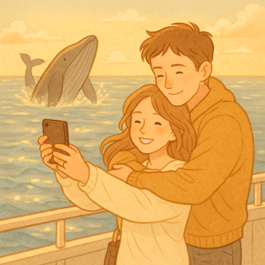 “너와 이곳에서 더 많은 추억을 쌓고 싶어. 이번 주엔 고래를 보러 가자!”