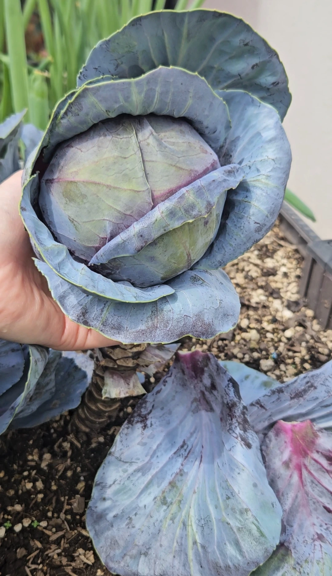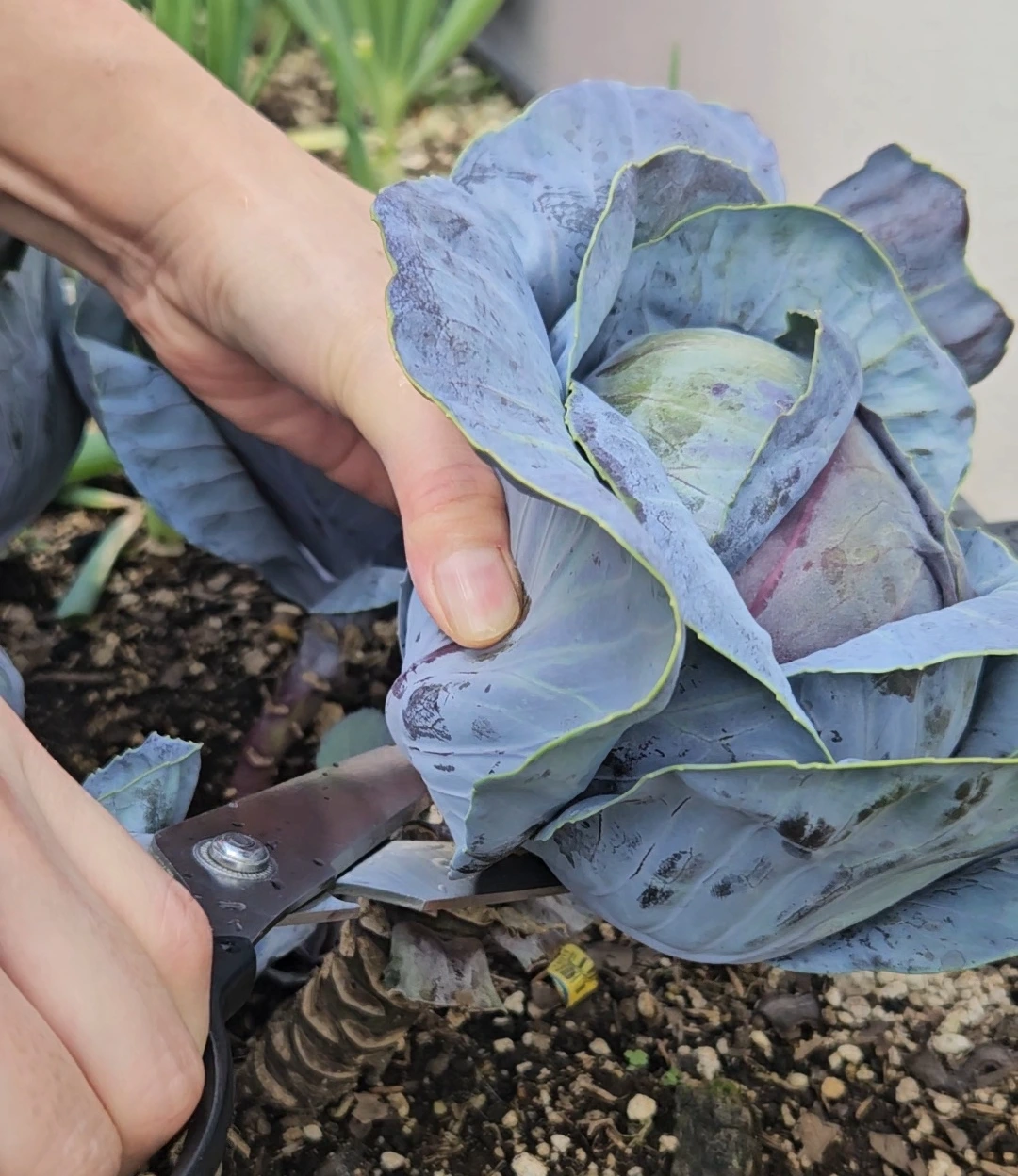 결국 줄기를 꺾어내어 양배추를 수확했다.