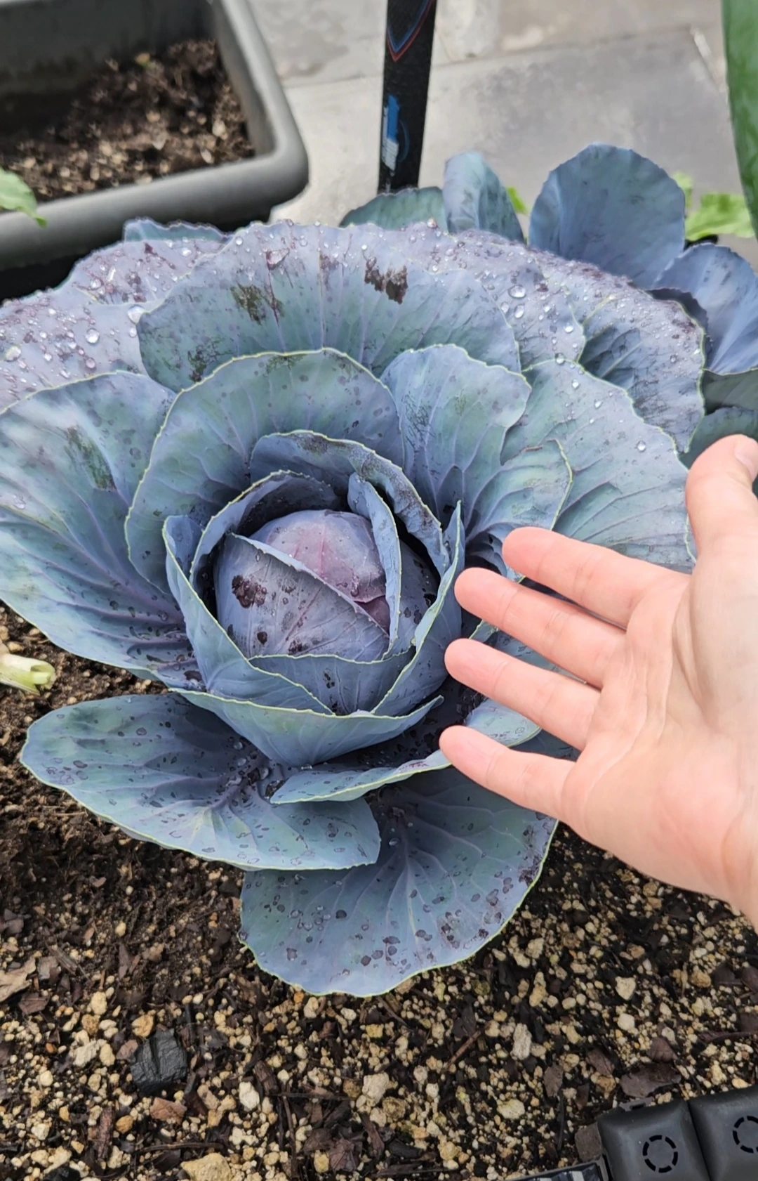 아기 손 크기였던 양배추가, 성인 여성 주먹만 한 사이즈로 자라는데 한 달 남짓 더 소요된 듯하다.