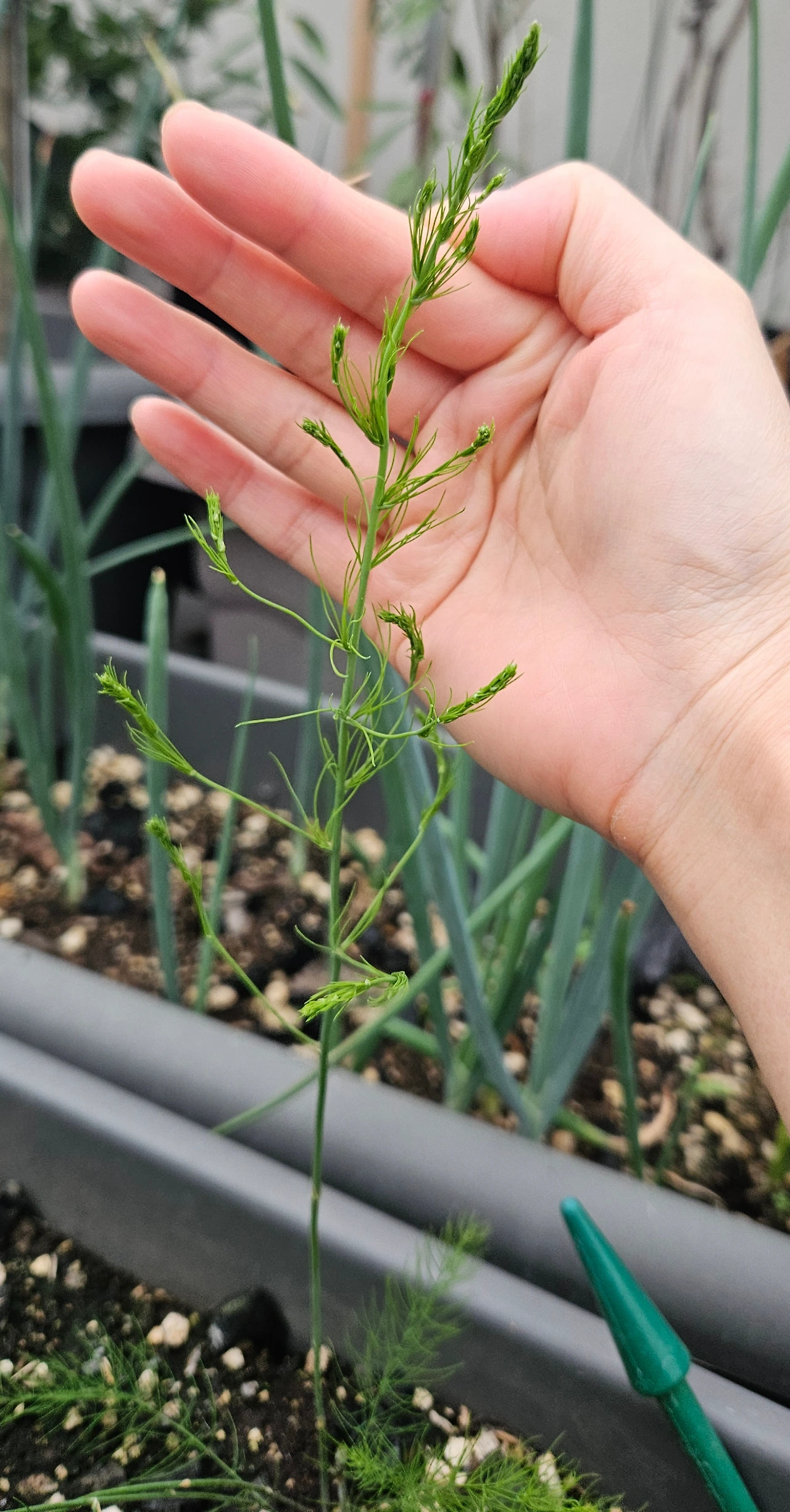 처음 키워본 탓에 아스파라거스의 성장 속도를 알지 못해, 열무를 키우던 작은 화분에 파종했더니 5개월 만에 화분을 꽉 차도록 자라나 버렸다.