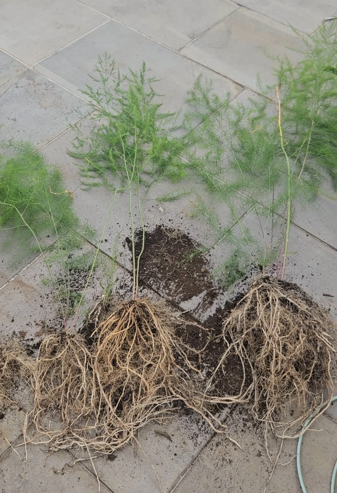 이번에도 큰 사이즈의 부직포 화분을 꺼내 들고 5개월간 비대하게 자라난 아스파라거스들을 옮겨 심어 주었다.