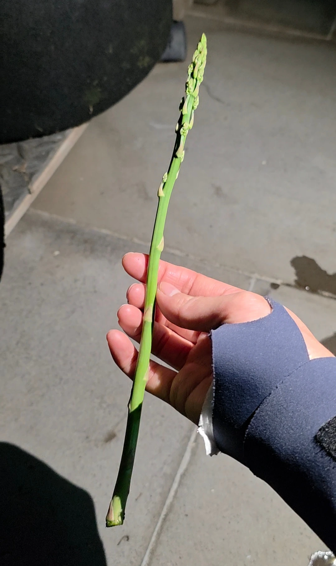 어느 날 삐죽삐죽 아스파라거스 싹이 올라왔다.