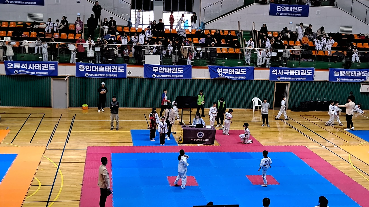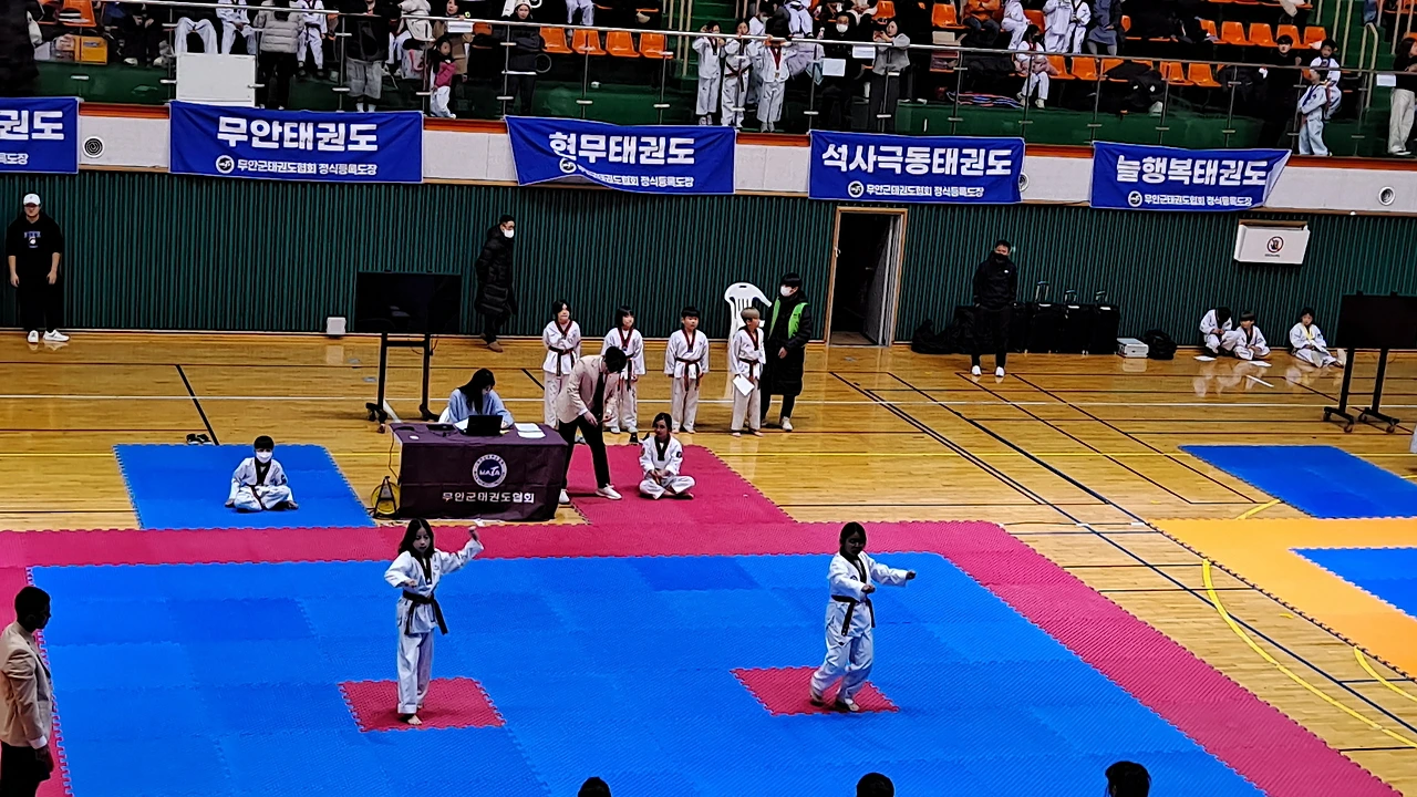가영,지원, 소망이는 대회를 뛰어 본 경험이 있어 무엇을 해야할지 알고 있었다. 모두 널찍한 곳에 자리를 폈다. 무안군배 태권도 대회라 참여 인원은 도대회 삼분의 일 정도였지만 그래도 잘하는 아이들은 많았다.