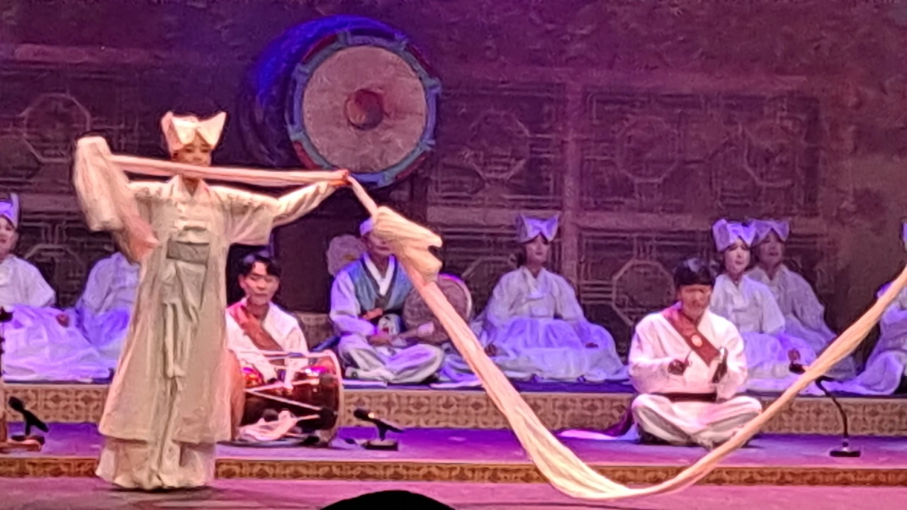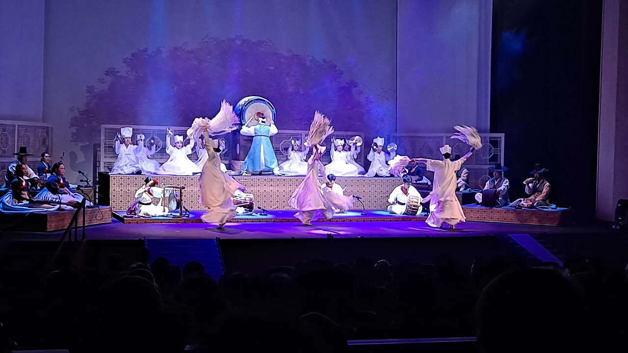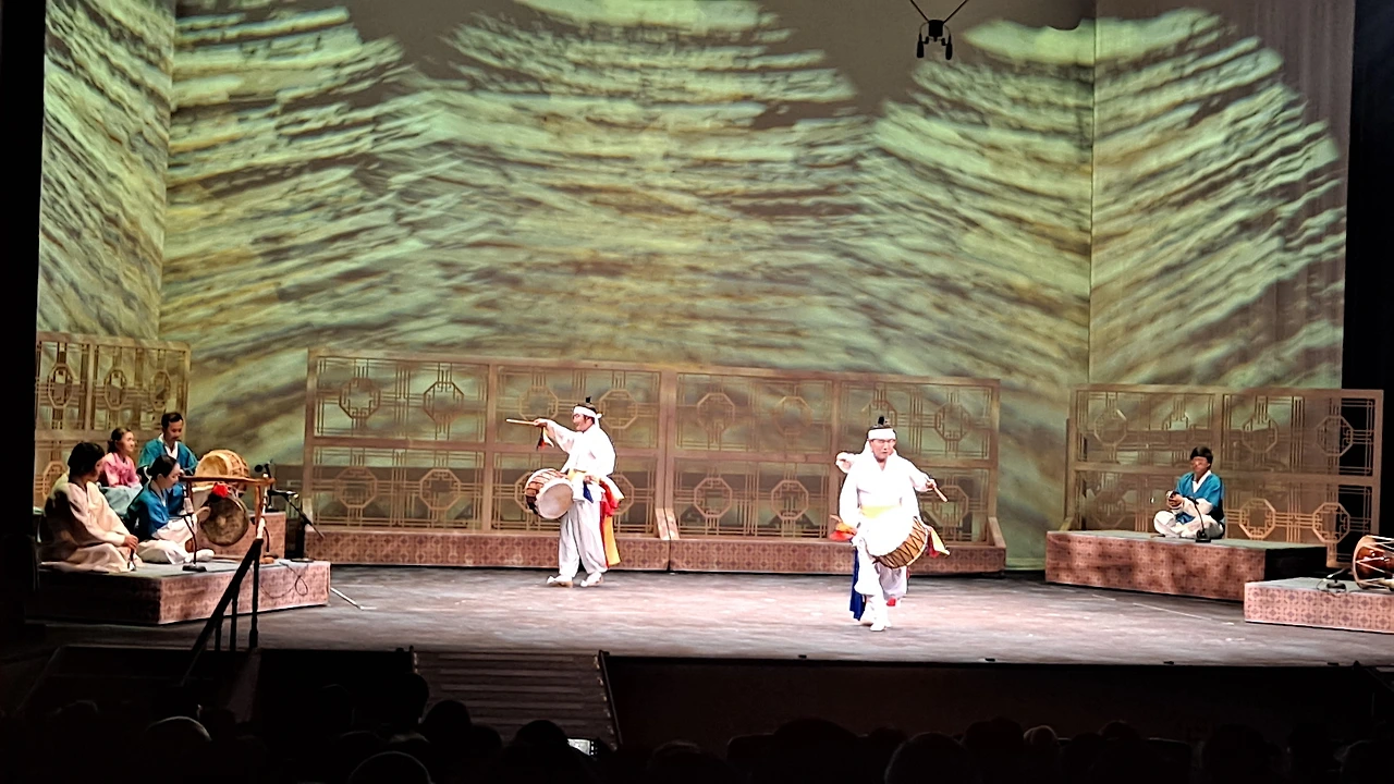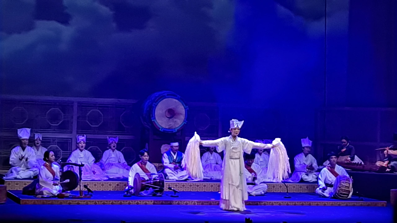 <천궁> 천궁은 화려했다. 어제와 오늘, 미래를 살아가는 사람들의 복을 빌어주는 소리로 씻김굿에 새로운 창작의도가 돋보이는 작품이었다. 북을 중심으로 꽹과리, 징, 장구의 소리가 산들바람이 허공을 뚫고 지나가는 듯 고요속에 퍼졌다. 균형있는 소리였다. 아직도 가슴에 북소리가 울린다. 과하지 않는 중심의 무게. 그것이 느껴졌다.