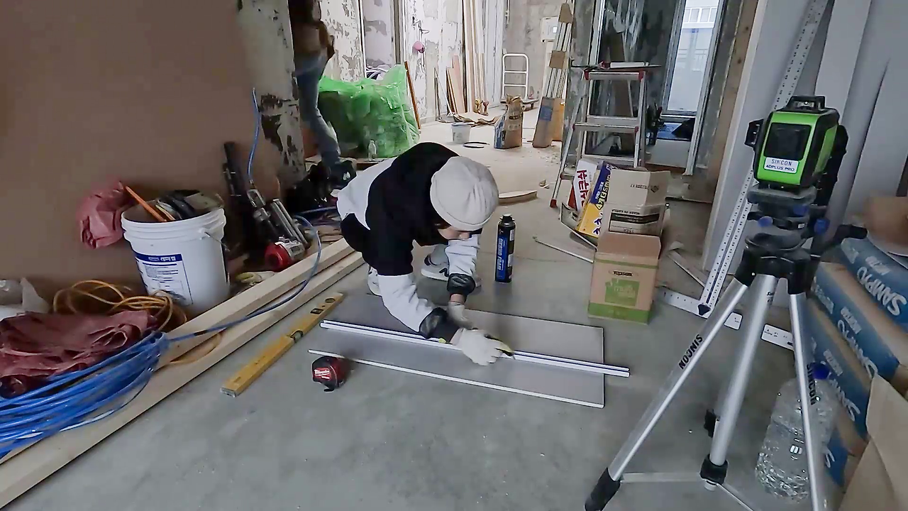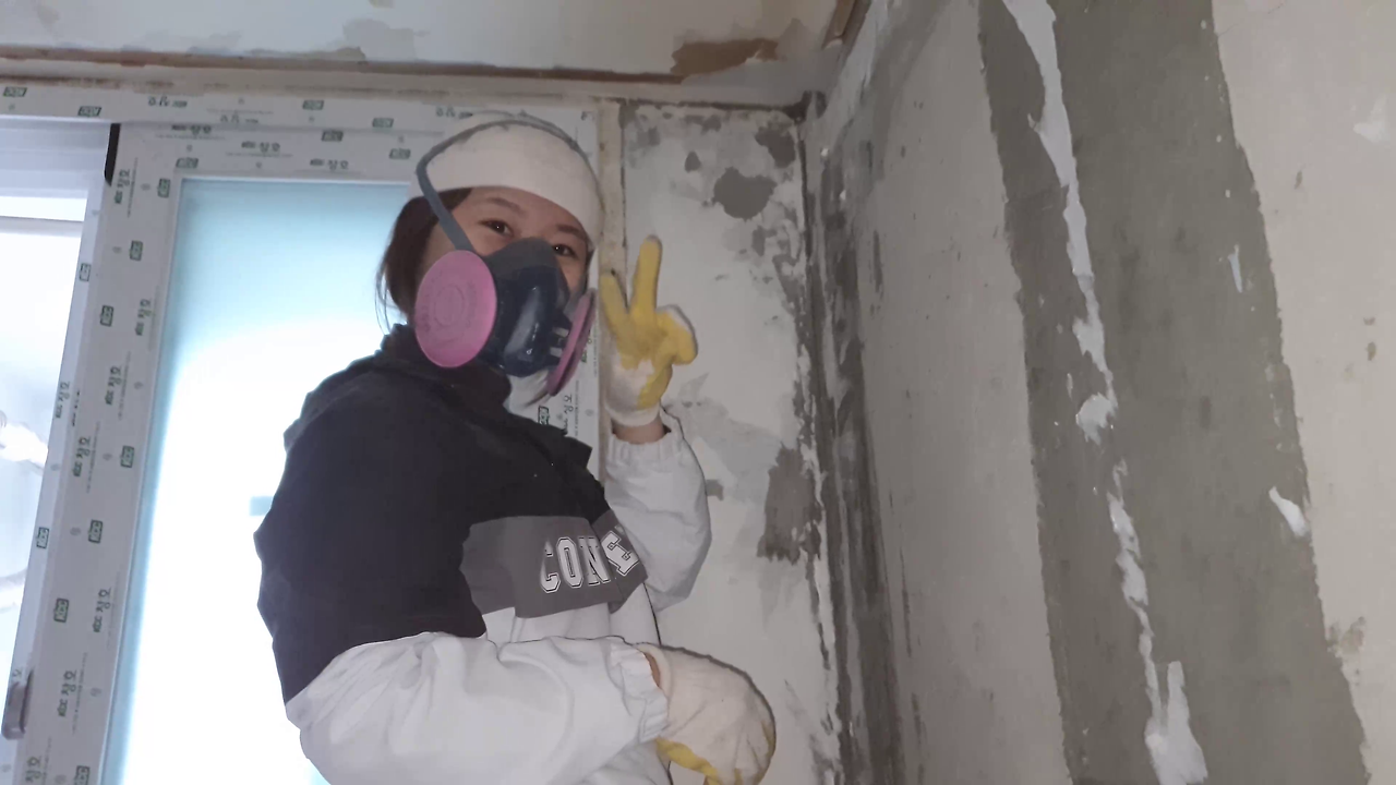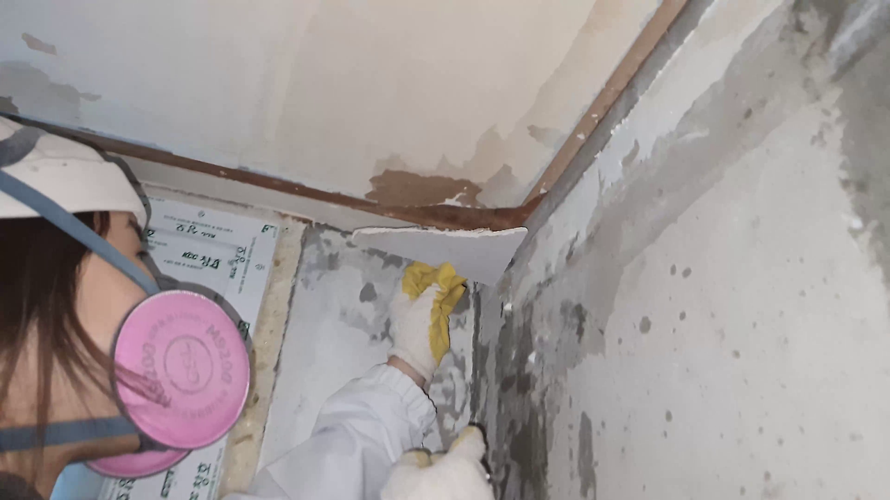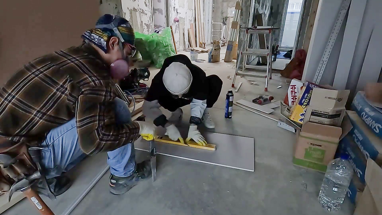 이제 타일을 붙일 시기가 점점 다가오고 있다. 타일을 붙이기 전에는 해둬야 할 작업들이 너무나 많다. 타일이 최종마감재이기도 한 이유도 있지만 마감을 잡기 위한 이유도 있다. 타일을 하기 전에는 가장 먼저 설비가 완료되어 있어야 한다. 그리고 방수가 제대로 되어 있어야 한다. 간혹 '타일을 새로 한다'에 대해서 "타일 새로 하면 방수 걱정 없겠네"라고 이야기하시는 분들이 더러 있다. 타일 자체는 흡수율도 낮아 흡수되기 전에 흘러내려가거나 마르기 때문에 방수가 된다고 할 수 있다. 하지만 타일과 타일 사이를 이어주는 줄눈은 '방수가 된다'라고 하기에는 무리가 있고 이야기하자면 '물에 강하다'정도일 뿐이다. 그렇기 때문에 타일 공정 전에 방수는 확실하게 되어 있어야 한다. 굳이 순서를 매기자면 타일이 선두 방어선이라면 방수는 최종 방어선인 셈이다. 그리고 타일을 붙이기 위해서는 문틀이 설치가 되어 있어야 한다. 기존 벽에서 타일이 얼마나 돌출이 되는지 혹은 마감선을 어느 정도로 잡을지를 결정해야 하기 때문이다. 그렇게 우리는 문틀을 설치하기 위해 사전작업을 진행했다. 철거당시 욕실 문틀을 떼어냈는데 문틀 상부에는 조적벽돌을 쌓아서 '붙여'둔 모습이 있었다. 문틀을 철거하기 위해 충격을 주고 흔들면서 붙어있던 조적벽돌들에 균열이 갔고 이내 붙어있던 조적 벽돌들이 한 덩어리째 떨어지는 일이 있었다. 혹여나 놓쳐 나중이 되었을 때 떨어지거나 깨지지 않은 게 정말 다행이다 싶었다. 그래서 현재 조적벽돌이 떨어지고 난 빈 공간을 남아있는 목재로 골조를 세워 둔 상태다. 그걸 아내가 보더니 "여기도 석고보드 붙여야 하는 거 아냐?"라고 말했다. 내가 듣기에 그 말에는 아내의 열정과 흥미와 호기심이 잔뜩 들어가 있었다. 그래서 나는 아내에게 임무를 하나 던져주게 됐다.