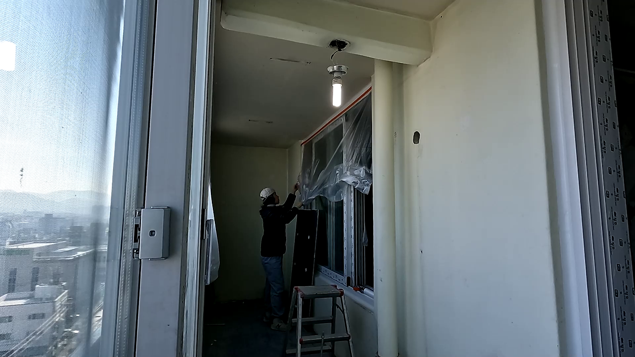 내가 욕실에서 혼자 복잡한 머릿속을 여행하는 동안 아내는 페인트 칠 준비를 했다. 페인트 칠 준비는 별다른 게 없었다. 그저 페인트가 묻으면 안 되는 곳의 보양을 하는 것. 그 보양은 '보양 테이프'로 불리는 자재를 붙여주는 과정이다. 주방 창 상부에는 상부장이 들어가지 않고 도장마감이기 때문에 주방 타일을 보양해줘야 했다. 그리고 나머지 다른 공간들은 보일러실, 세탁실, 베란다 등이다.