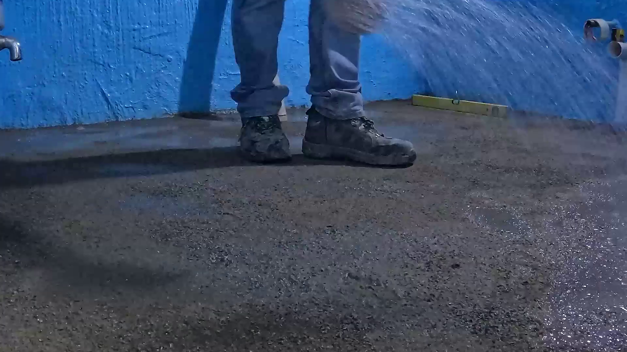 바닥에 물을 뿌려주는 과정을 통해 레미탈의 양생을 촉진하지만 물을 뿌리면서 유심히 지켜봐야 할 과정이 있다. 그건 바로 기울기의 상태다. 욕실에서 샤워를 하면 물은 모두 배수구로 빠져들어가야 한다. 기울기가 반대로 된다면 어느 한쪽에 물이 고일 수 있기 때문이다. 잔디밭에 물을 뿌리면 빨려 들어갈 물은 빨려 들어가고 일정 양에 달하면 나머지 물은 차오르게 된다. 레미탈도 동일하다. 물이 차오르면 그 물이 이동하는 방향을 잘 살펴야 한다. 이 바닥에 타일을 붙일 텐데 이미 한 곳에 고이기 시작한다면 그 부분이 가장 낮은 부분이라는 뜻으로 받아들여야 한다. 그런 곳이 있다면 여유분의 레미탈을 부어 공간을 채워주고 기울기를 확보해줘야 한다. 어떻게 보면 양생도 중요하지만 양생만큼 중요한 작업이라 할 수 있다.