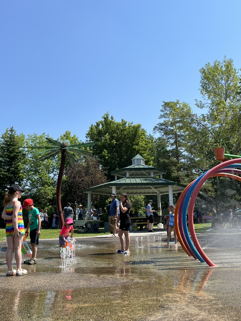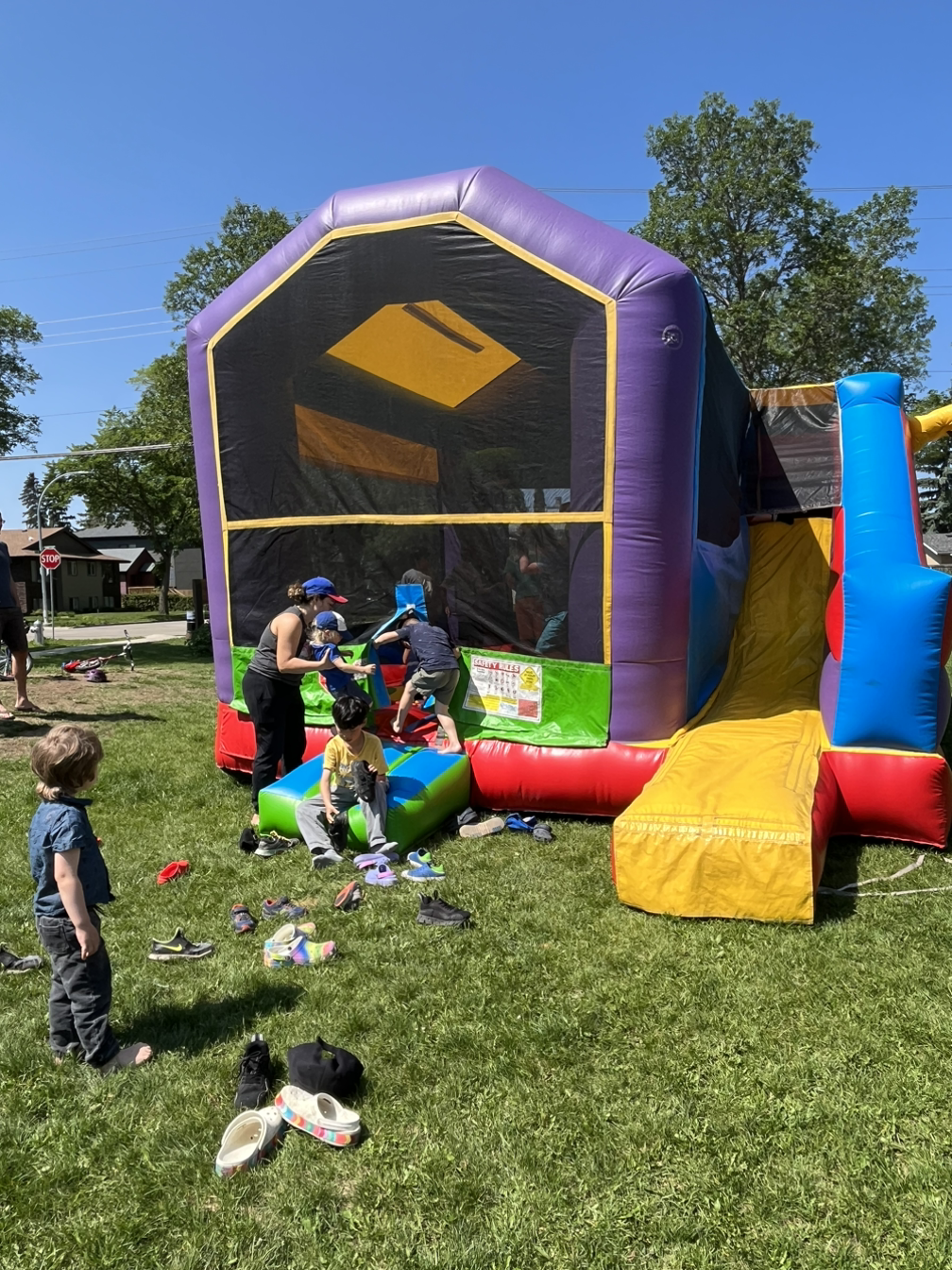 바비큐 그릴로 구운 핫도그와 감자칩, 젤리, 채소 간식, 탄산음료, 아이스크림을 무료로 막 나눠 주고, 동네 분들의 자원봉사로 진행되는 페이스페인팅, 대형 에어 바운스에다 바닥 분수, 물도 뿌려주는 놀이터, 노느라 정신없는 동네 꼬맹이들... 7살 아이 맞춤 종합 선물 세트를 아무 생각 없이 있다가 덥석 받았다.