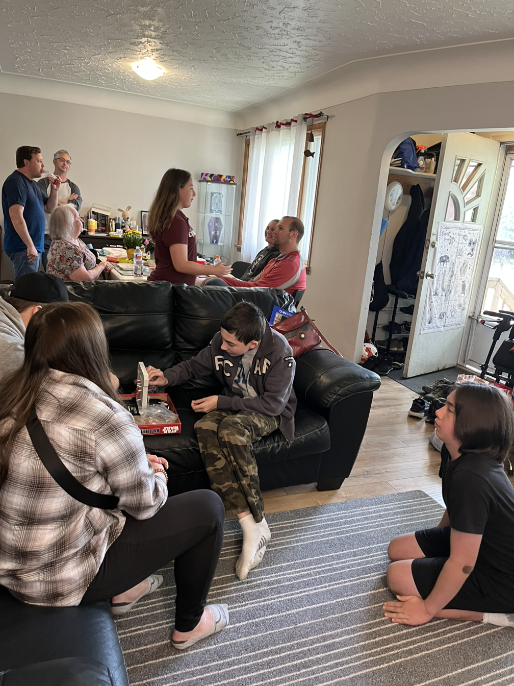 거실에서 나 포함 총 11명이 대충 여기저기 옹기종기 서서 일회용 포크, 종이 식판에 찬통 칸칸이 담은 차가운 피크닉 음식으로 가족 저녁 모임을 가졌다.
