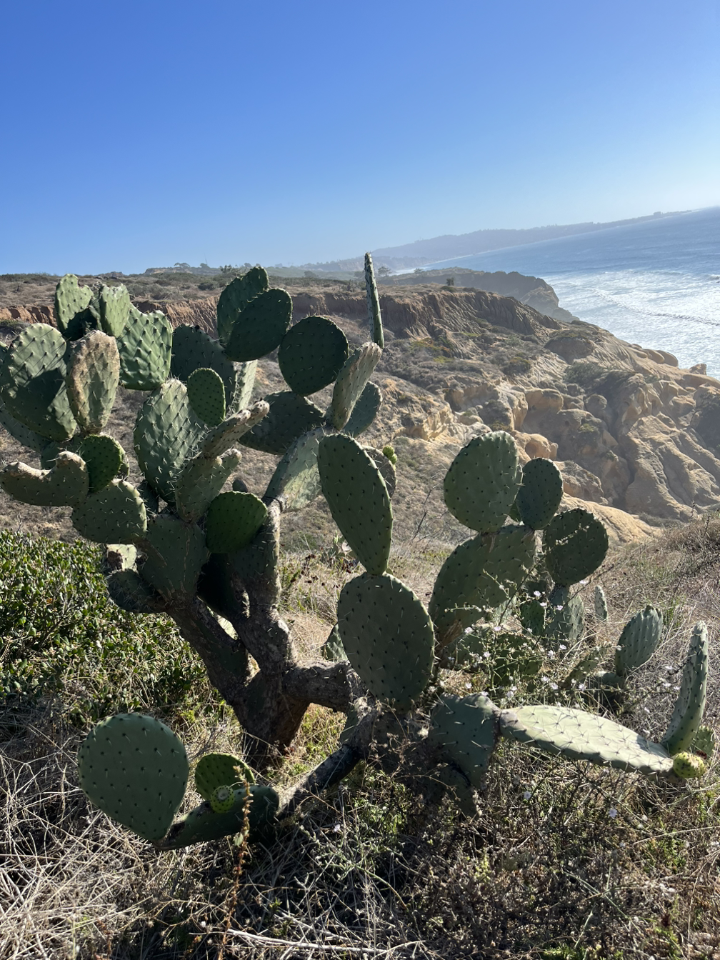 샌디에이고 도착 후 사흘 동안 걸어서 가볼 만한 곳은 제법 많이 둘러봤기에, 대충한 과제지만 제출하고 난 뒤 상쾌한 기분으로 트래킹에 나섰다. 토리파인스 트래킹을 동네 마실 가듯 자주 한다는, 운전에 가이드까지 자처해 주신 지인의 친언니 덕을 톡톡히 봤다. 좀 더 멀리 주차하고 더 많이 걷지만 한화 3만 원에 육박할 듯한 주차비 미화 20달러를 내지 않아 더 신나는 기분으로 뜨거운 태양을 핑계 삼아 과감하게 끈나시에 테니스 스커트를 입고 등산화를 신은 채 해안길을 따라 이어지는 산길을 올라가다 보니 땀이 비 오듯 쏟아졌다.