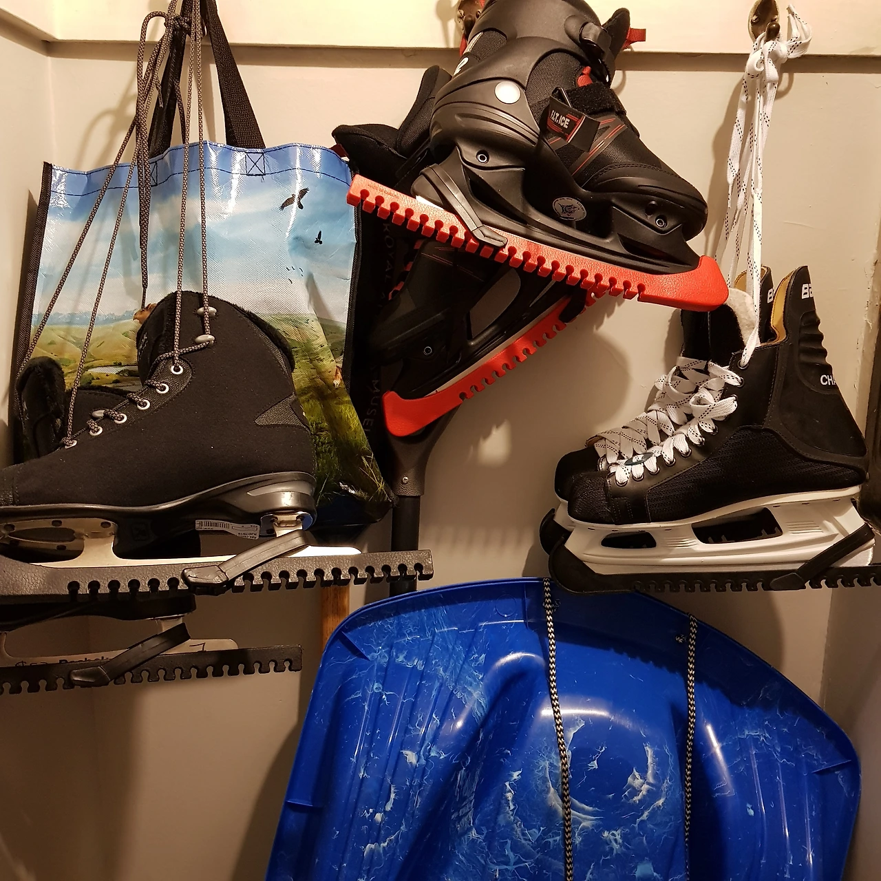 매번 애들 거 남편 거 먼저 챙기다 보니 내가 사용하겠다고 뭔가를 새 거로 선뜻 산 게 언제였는지 기억이 가물가물하다. 검은색에 빨간 포인트 색이 들어 가 있고 인라인스케이트와 비슷한 디자인이라 친숙한 피트니스용 아이스 스케이트를 구매하고 스케이트 날 커버는 빨간색으로 선택한다. 집에 와서 보니 볼수록 마음에 든다. 앞으로 겨울마다 꺼내서 탈 거 생각하니 새 거로 사길 잘했다 싶다. 어린 시절 새 신발 생겼을 때 머리맡에 두고 잘 정도로 기분 좋던 설렘을 지금 다시 느낀다.