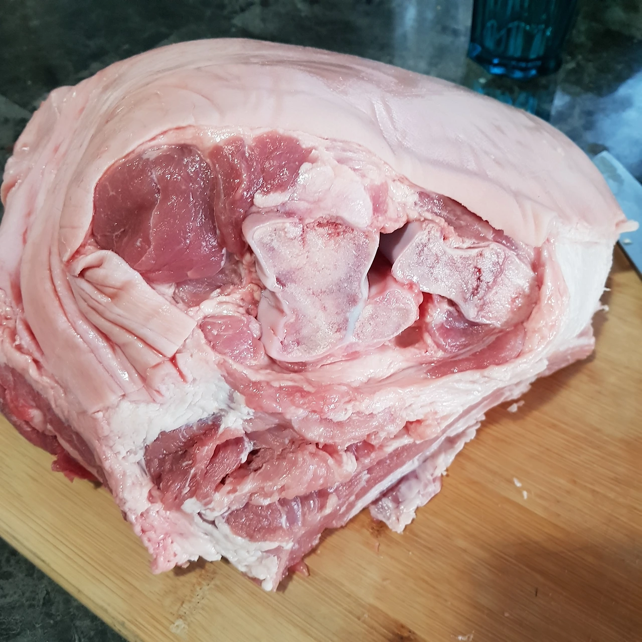 냉장고 열 때마다 4.5킬로그램의 거대한 어깨살 돼지고기를 째려본다. 그러길 일주일째가 넘은 오늘! 유통기한이 딱 오늘까지이다. 저번에 소금에 절여서 훈연한 어마무시하게 큰 사이즈의 생햄을 샀다가 중간에 뼈가 있는지 모르고 씩씩하게 칼로 소분하다가 손가락 날려 먹을 뻔한 적이 있어서 비슷한 사이즈의 돼지고기 덩어리가 은근히 부담스럽다.