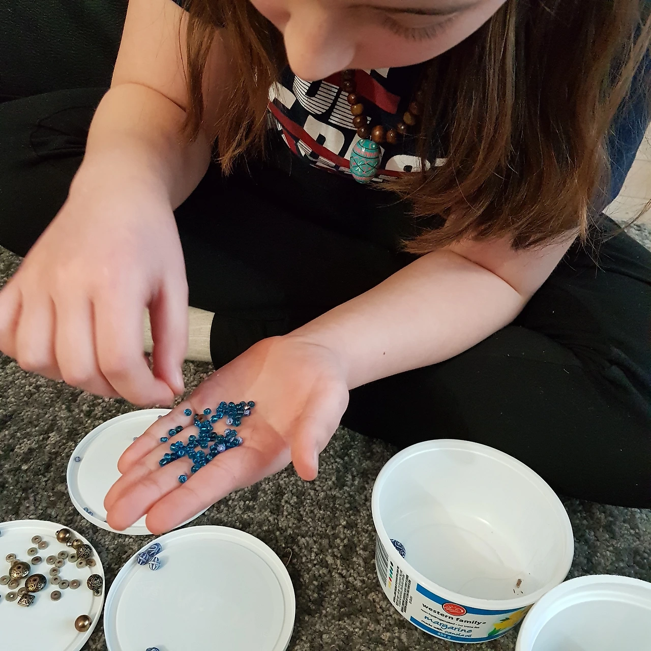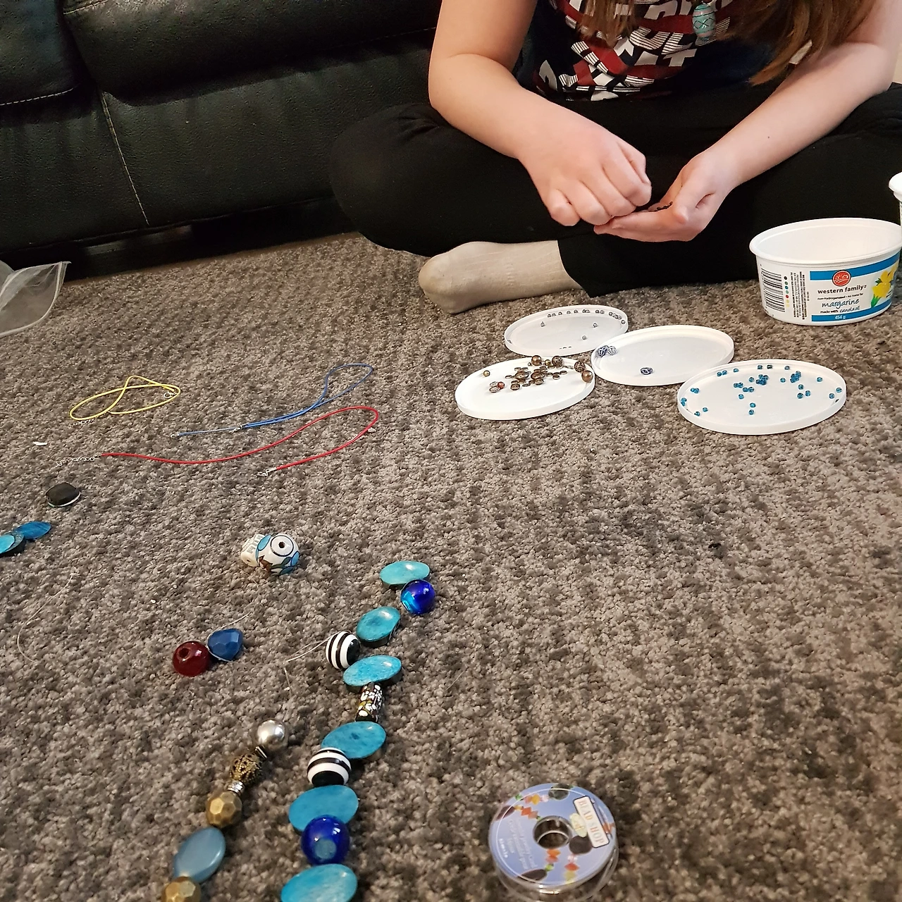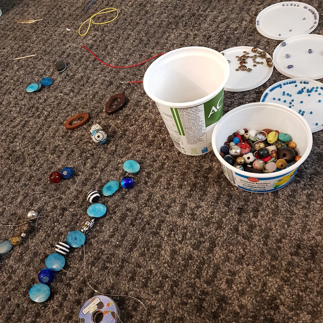 뭐든지 다 자기 건 줄 아는 딸내미가 물어보지도 않고 거실 카펫 위에 액세서리 만들기 구슬을 온통 늘어놓고 열심히 구슬을 꿰고 있다. 다 먹은 요구르트 통에 색깔 별 크기별로 구분해서 담아 놓고 제법 본격적으로 제작에 박차를 가하는 모습에, 말도 안 하고 가져가서 쓰냐고 한 소리 하려다가 혼자 조용히 잘 노는 게 어디냐며 같이 옆에 앉아서 구슬을 꿰고 있자니 눈이 너무 침침하다.