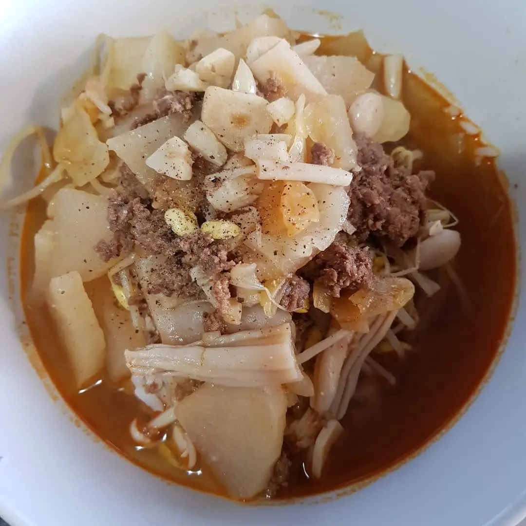 오늘 점심 메뉴는 경상도 식 콩나물 소고기 뭇국! 소고기 뭇국에 고춧가루와 콩나물을 더해서 육개장 비주얼이지만 멸치육수를 넣기에 국물은 시원하다. 멸치가 없어서 얼마 전 한국에서 직구한 멸치 다시다를 한 숟가락 넣었더니 먹을 만하다. 국거리 소고기도 없어서 지퍼락에 납작하게 펴서 얼린 다진 소고기를 해동도 안 한채 완자 마냥 뭉쳐서 넣었고 파도 없어서 생략했지만 마늘만큼은 미친 듯이 많이 넣었다. 이쯤 되면 마늘은 향신료가 아니라 그냥 채소 취급을 하는 게 맞다.