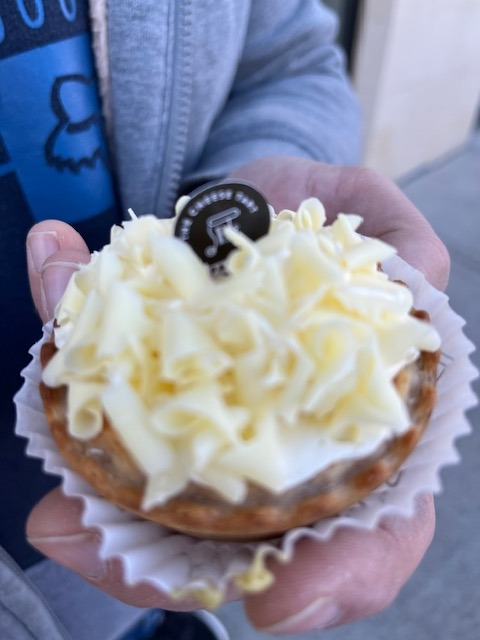 평소에도 좋아하는 피스타치오가 부스러기로라도 올라가 있고 가격을 보면 당연히 피스타치오가 실제로 어느 정도 들어가 있을 거처럼 보이는 차분하게 톤다운 된 암녹색의 크림이 올라가 있는 타르트는 남편이 먼저 골랐지만 나도 먹고 싶어 하니 본인은 다른 걸 고른다. 길거리에 서서 남편 먼저 맛보라고 입에 넣어 준다. 서로에게 타르트를 먹여 주며 길바닥에서 염병첨병 꼴값을 떤다.