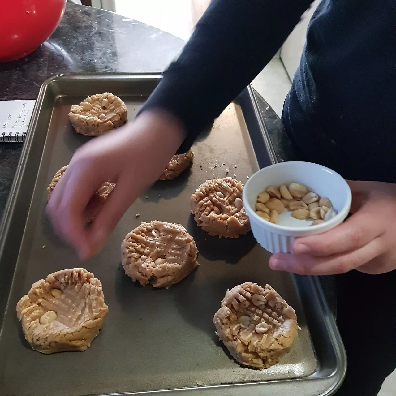 스프링 브레이크 세쨋날, 할머니와 오전 시간을 보내고 점심까지 먹고 들어온 아이들과 남은 하루 뭘 하고 시간을 같이 보낼까 고민 끝에 과자 레시피북을 뒤적뒤적해본다. 처음부터 끝까지 다 훑어보아도 피넛버터쿠키 보다 나은 게 없어 보인다. 몇 번 구워 봤기에 익숙하고, 단순한 몇 가지 재료의 조합으로 이렇게 훌륭한 맛이 나기도 힘들다.