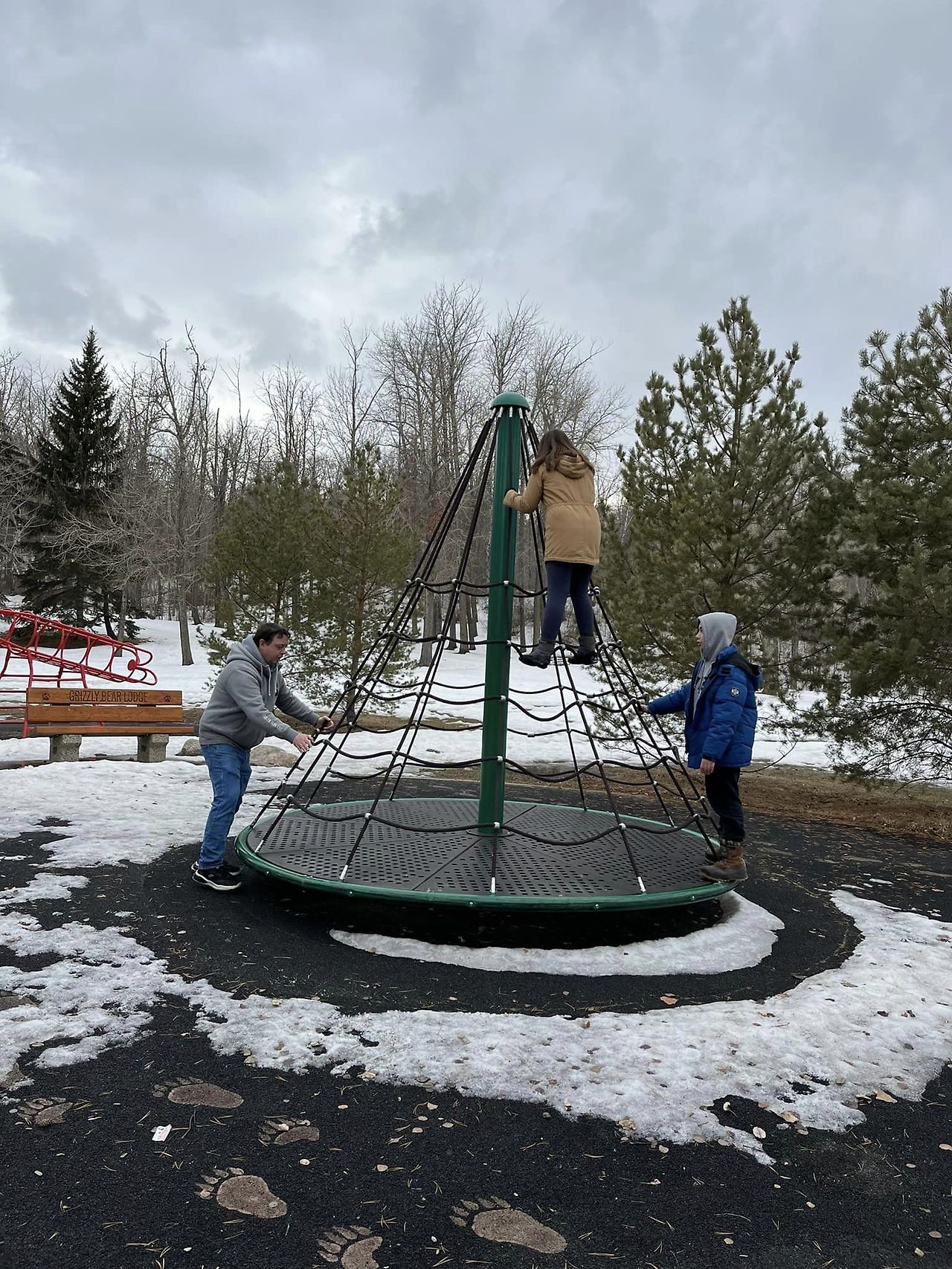 걷다 보니 커다란 야외놀이터가 보여 오늘의 하이킹 목적지를 여기로 하고 간식을 꺼내고 아이들은 새로운 놀이터에 흥분해서 이리저리 쫓아다니며 그네도 타고 미끄럼틀에도 올라간다. 눈이 녹아 드러난 풀밭 어귀에 누구나 바비큐를 할 수 있도록 바비큐그릴이 설치되어 있는 피크닉 장소가 보인다. 여름에 도시락 싸서 소풍 오면 좋을 것 같아 장소를 기억해 두어야겠다.