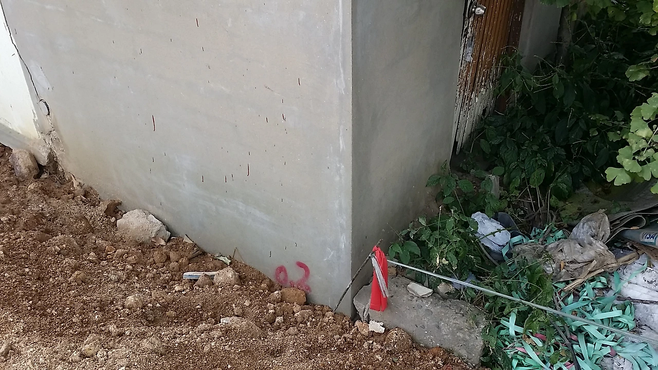 측량이 끝나며 확인한 결과 옆집 땅이 3 제곱미터 정도 넘어와 있네요. 건축물이 조금 넘어온 경우라 별도로 조치를 요구하지는 않을 생각입니다.