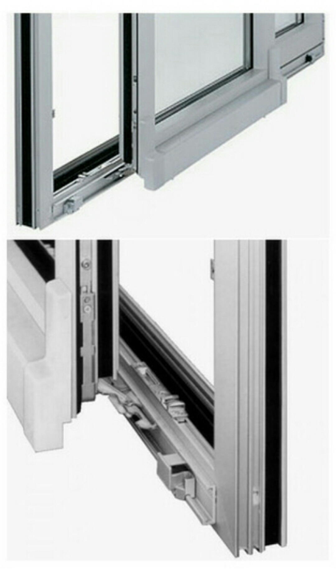 흡사 승합차의 슬라이딩 문에서 느껴지는 그 무게감의 레일이라고 이해하면 됩니다. 이 슬라이딩 방식은 완전히 닫을때 패킹되고 열린 상태에서는 경사를 달리해 창호가 패킹 위에 떠 있게 됩니다. 때문에 독일식 슬라이딩 창호의 하단엔 레일부분이 불룩하게 마감되어 튀어나오는 모습입니다.