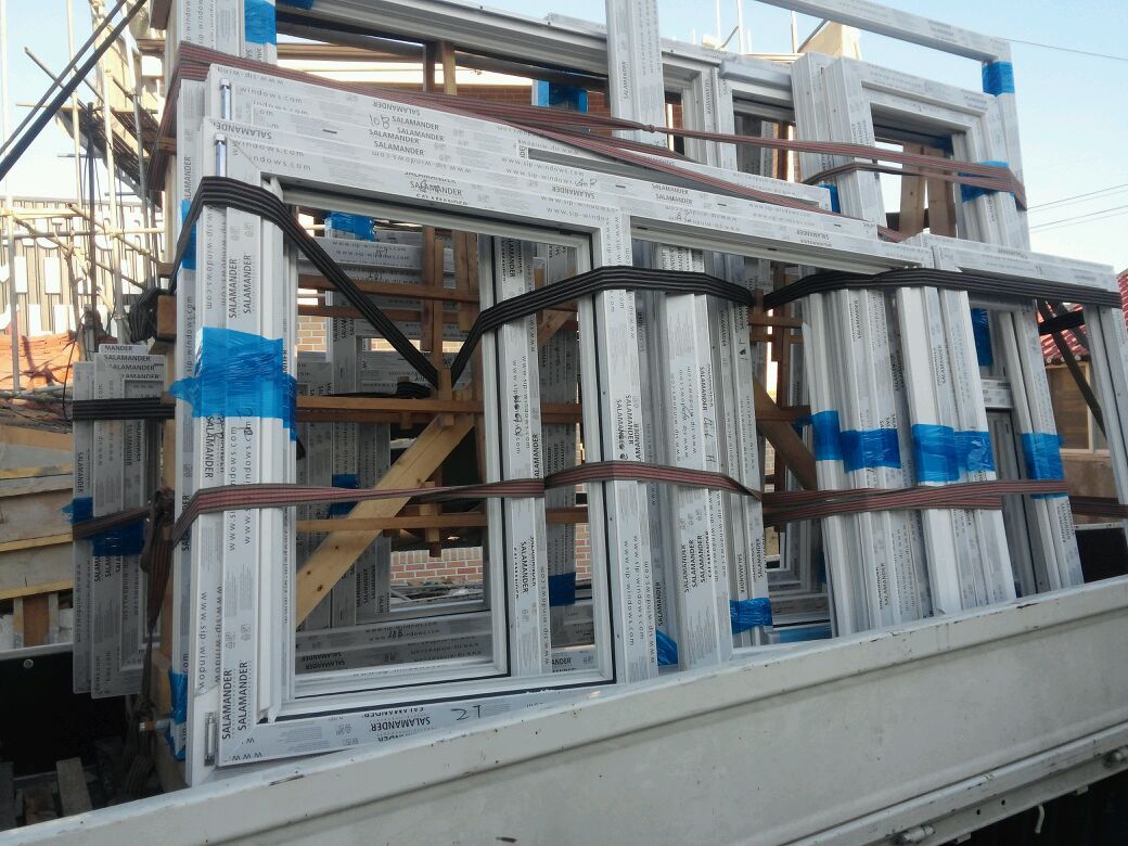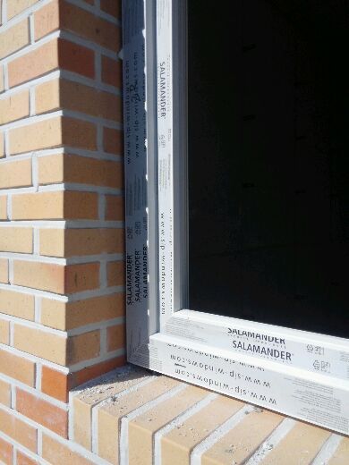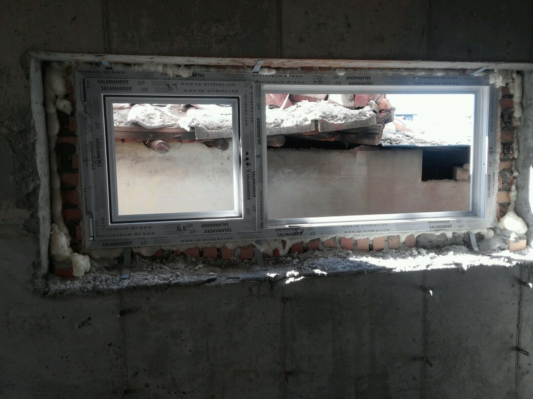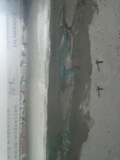 마감재로 벽돌이 선택되어 골조와 창호와의 공간이 상당합니다. 이부분은 압출법단열재(XPS)로 채워 메쉬와 미장을 하고 석고보드 2장으로 마무리됩니다.