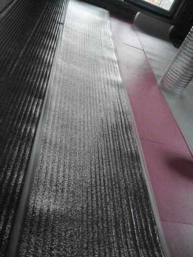 기존 콘크리트 바닥에 압출법 단열재(벽산 아이소핑크)를 깔고 그 위에 열반사지를 깝니다.