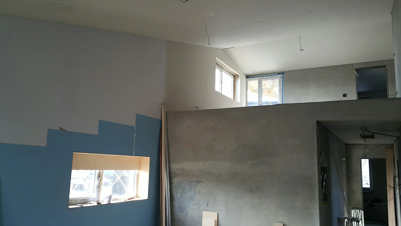 지난 포스트를 주의깊게 보신분은 아시겠지만 미장이 되지않은 부분은 전부 외기와 닿는 부분입니다. 단열과 결로 가능성이 있는 외부 벽쪽에만 두겹의 석고보드을 붙이게 되었습니다.