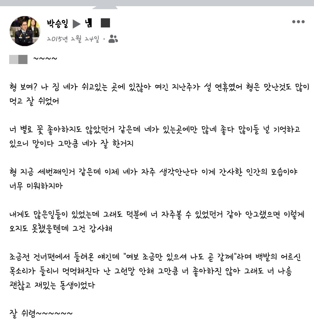 하늘나라로 떠난 동생의 SNS에 쓴 글