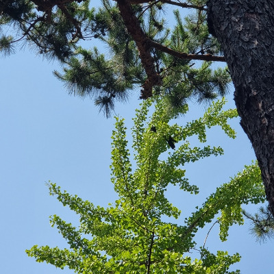 “잘 보면 한 마리는 저 은행나무 위에서 이쪽을 바라보면서 울고 있고 한 마리는 계속 이 주위를 빙빙 돌면서 울고 있어요. 한 시간도 넘었어요. 아마 가족인 거 같은데 이걸 어떻게 하죠?”