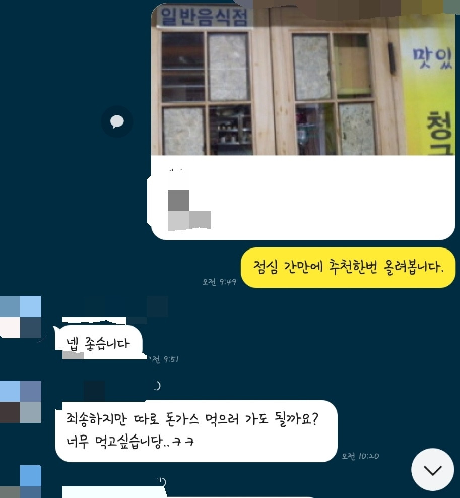 “죄송하지만 따로 돈가스 먹으러 가도 될까요?? 너무 먹고싶습니다..ㅋㅋ”