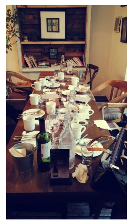 먹다 남긴 빵, 대화를 하다 커피 잔에 비벼 끈 담배꽁초, 수 차례 채웠다 비웠다 했을 와인잔, 접시에 남은 소스, 누군가는 아직 더 먹으려고 포크와 나이프를 그대로 둔 것, 먹다가 남긴 디저트 조각 등을 보면 와글와글 떠드는 소리가 들리는 기분이었습니다.