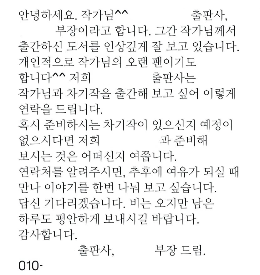 이렇게 처음으로 계약이라는 걸 하게 되었습니다. 그리고 투고라는 것을 해봤습니다. 거절 메일이 하나 둘 쌓일 때쯤 한 곳에서 긍정적인 답변을 받았어요.