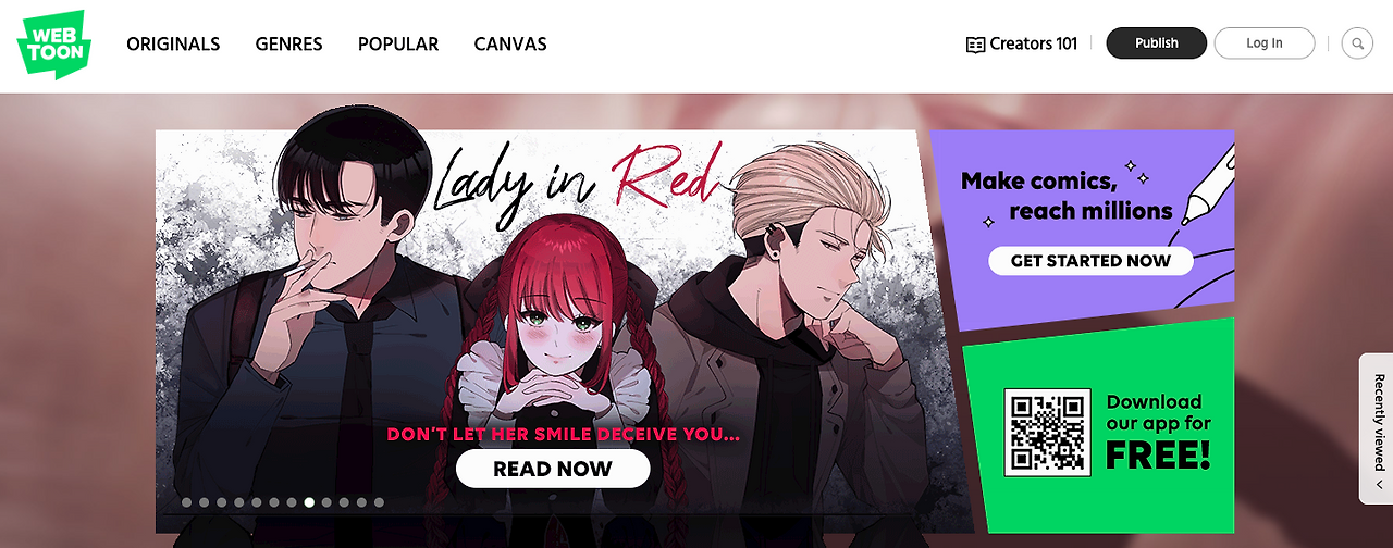 K웹툰의 충성도 높은 팬들의 경우 자국내 서비스되는 K웹툰을 보는것을 넘어 글로벌 서비스를 하는 네이버나 카카오의 글로벌 웹툰 사이트를 찾기도 합니다.