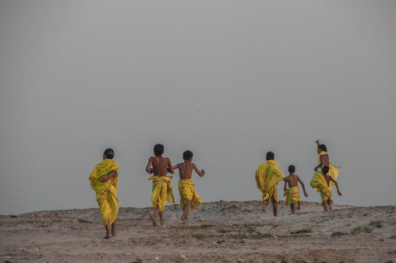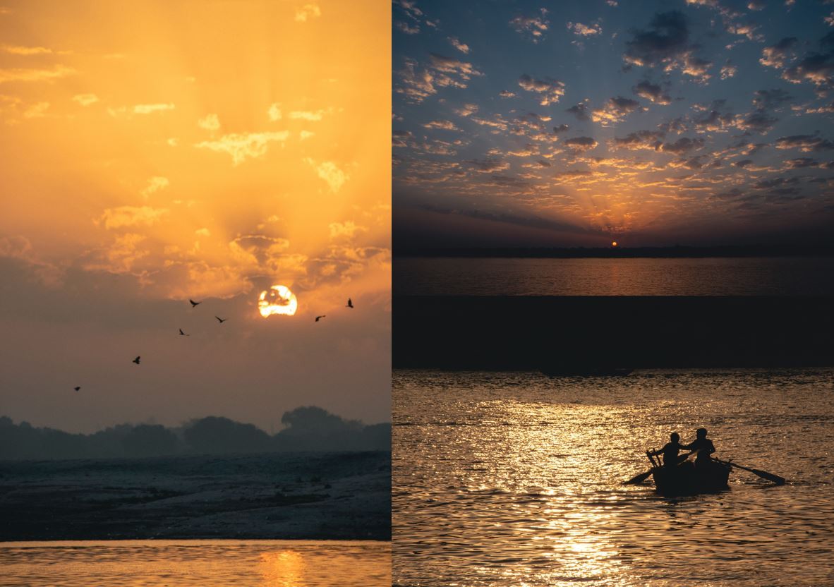 졸린 눈을 이끌어 바라본 갠지스강 위에서 펼쳐지는 주황빛 하늘과 잠시 길을 잃어 바다를 찾아 헤엄치는 돌고래를 만나서인가, 일출만큼 기대했던 일몰은 크게 아름답지 않았다.
