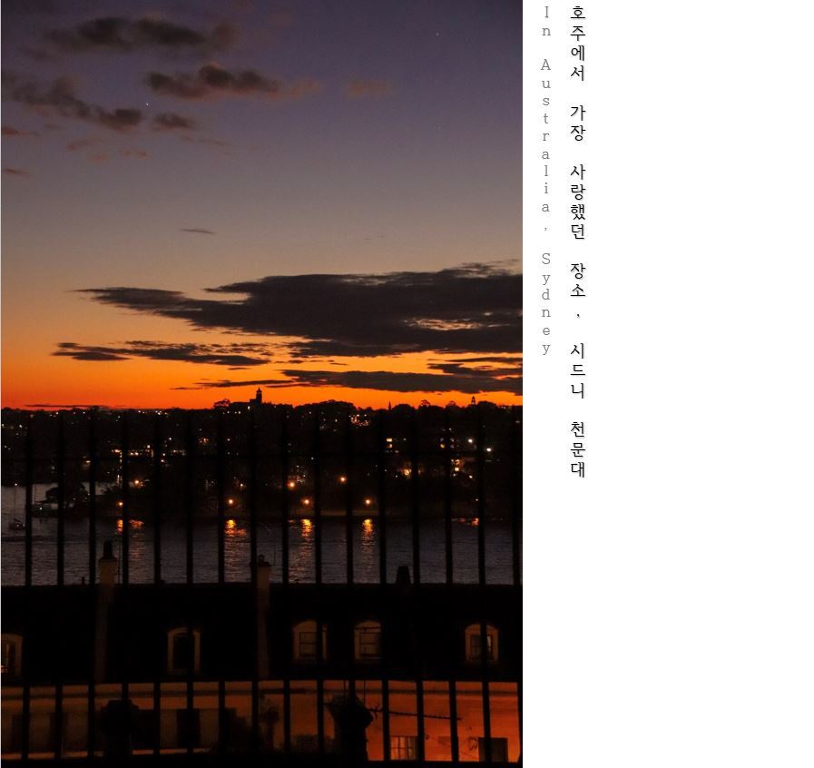 시간이 흐른 지금, 가끔 시드니의 랜드마크 뒤로 펼쳐지는 호주의 노을이 그리운 거 보니, 언제가 한 번쯤은 다시 방문해도 되지 않을까라는 생각을 하곤 한다.