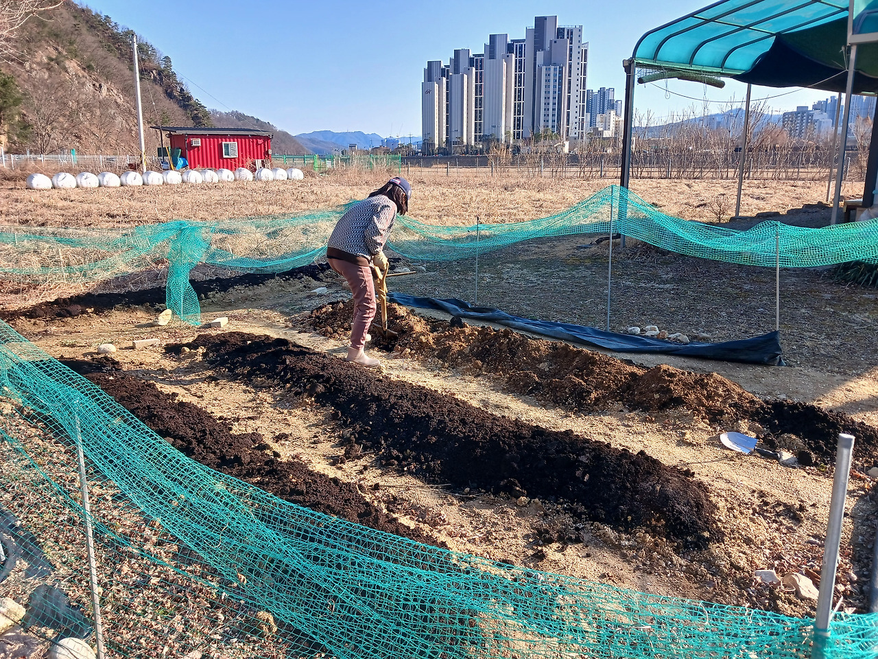 살충제를 뿌리고 퇴비를 넣은 뒤