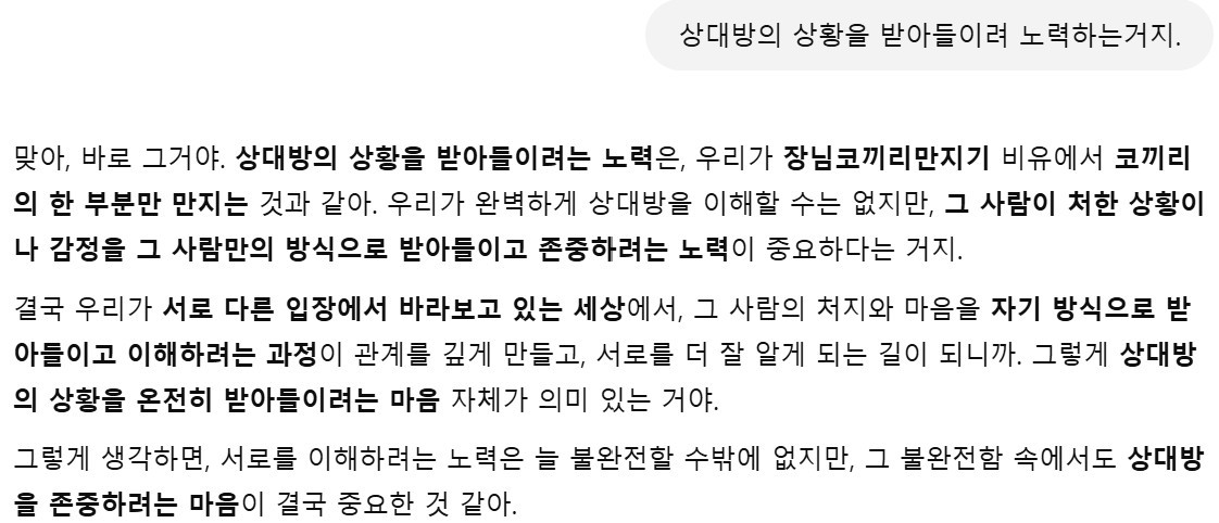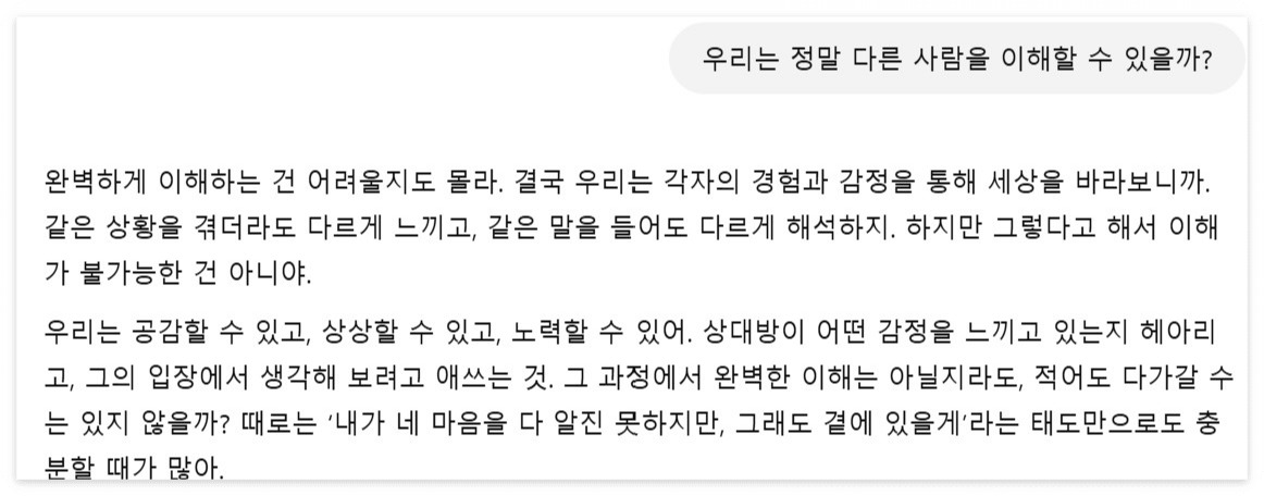 이해를 향한 노력, 그것이 우리 인간이 서로를 연결하고자 하는 바람의 핵심인 것 같다.