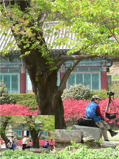 이곳에, 해마다 이만 때쯤이면 사진사가 제일 좋은 포토존을 차지하고 있다. 낡은 사진첩 속의 사진은 같은 배경에 다른 사람들로 꽉 차있다. 예전에는 사진 찍는 손님이 많았으나, 지금은 없다고 한다. 사진기의 시간은 과거에 머물러 있다. 사진기는 그때 그 시절로 돌아가 삼각대 위에서 기다리고 있으나, 사람들은 그곳의 세월에서 너무 멀리 지나와 있다. 돌아갈 수도 없다. 그곳, 사진사의 사진기는 '찰칵'하는 자기의 셔터 소리를 잊은 지 이미 오래다. (다음 해부터 사진사가 안보였다. 신원사를 찾는 사람들은 그때부터 신원사의 사진기 셔터 소리를 잊었다.)