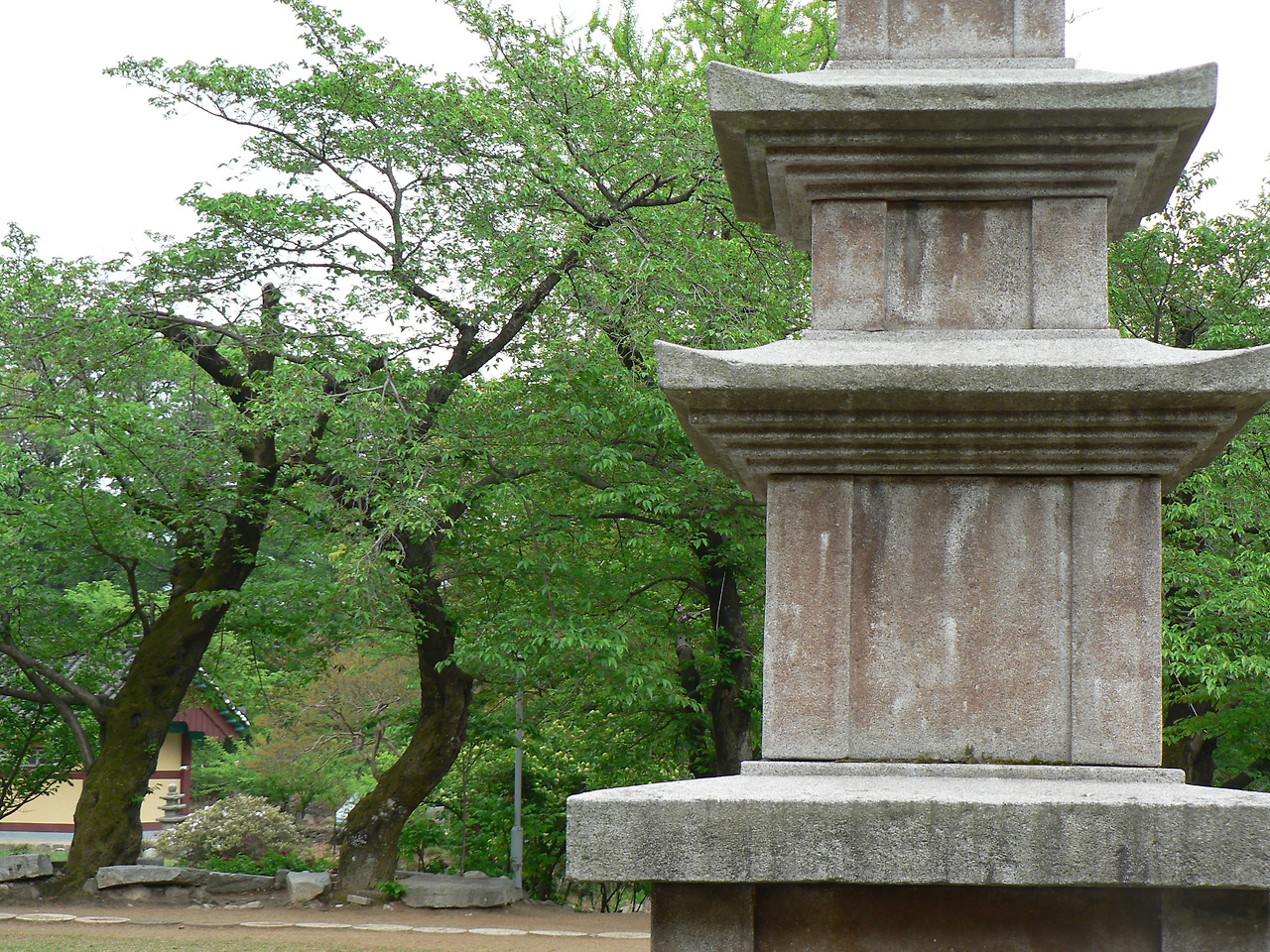 젖은 석탑이 참 아름답다. 비에 길이 막혀 떠나지 못한 바람이 나 같이 머물러 있다.