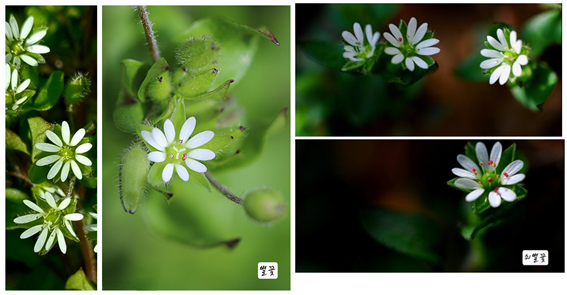 5장의 꽃잎으로 구성된 하얀 별 모양 꽃이다. 벼룩나물과 혼동하는 사람들이 많다.