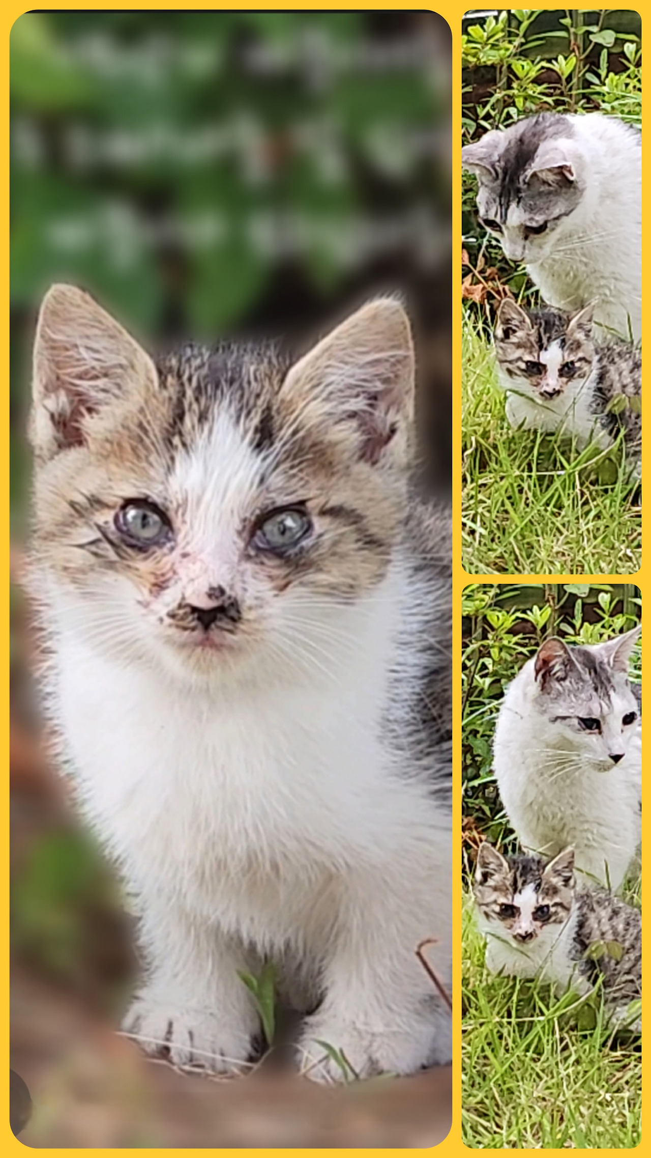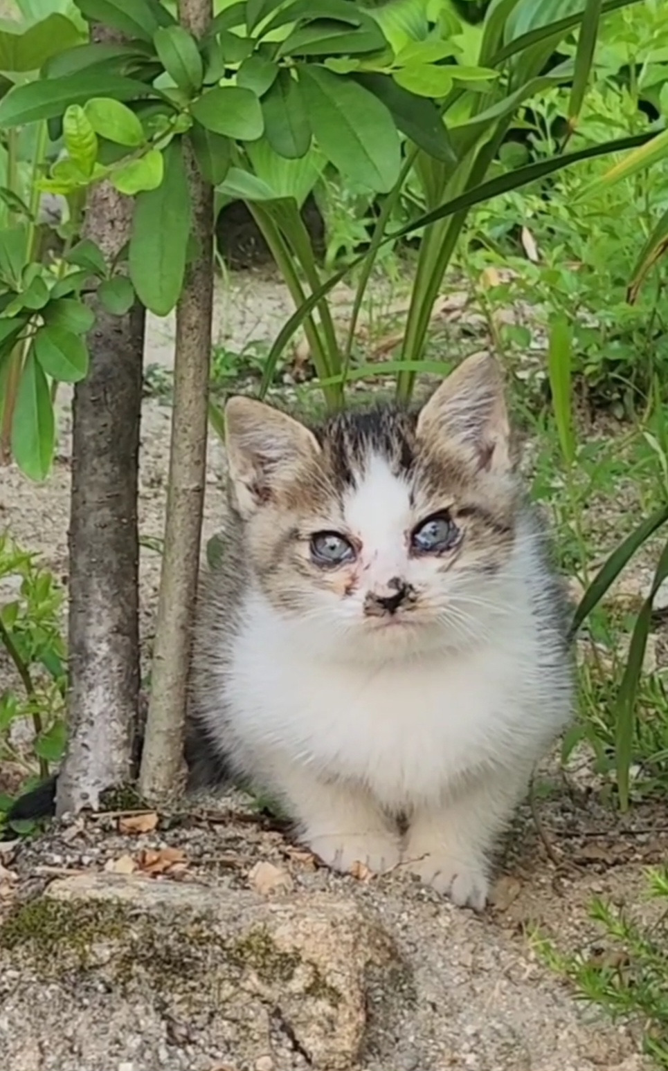 처음 인간 앞에 선 만남에 엄마 뒤에 숨어서 어쩔 줄 모르는 아기, 예쁘고 귀여웠다. 아기의 상태를 보니 두 눈에 딱지가 앉아 좀 지저분해 보이지만, 건강해 보였다. 엄마가 그루밍도 해주며 아기를 잘 관리를 해야 하는데, 이쁜 아기가 어떤 모습인지 볼 수 없으니... 내가 아기 눈을 닦아줘야겠다.