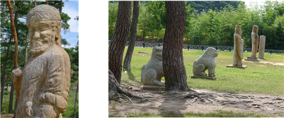 陵 앞에는 상석床石이 놓여있고 원형봉분 주위는 돌울타리가 둘러 저 있다. 화강암 울타리에는 마른 이끼가 검버섯 무늬같이 곱게 박혀 있다. 十二支像이 봉분 아래를 감싸고 있다. 十二支像은 어느 하나 허투루 새겨지지 않아 지금 還生하더라도 울음을 울고, 기어 다니고, 귀를 쫑긋 세울 수 있을 것 같다. 울타리 난간에 기대어 귀 기울여 본다. 적막, 환생은 없었다.
