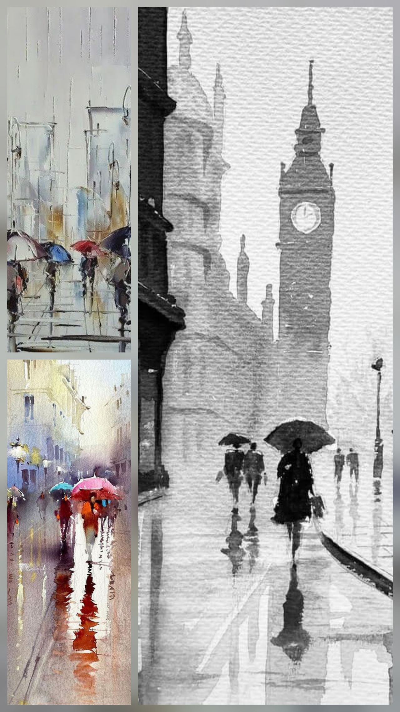 가을비가 며칠 째 내린다. 이번 가을에는 비가 자주 온다. 가을비 빗방울에는 가을의 근원을 알 수 없는 고독이나 쓸쓸함이 들어있다. 이것은 아무리 우산을 써도 피할 수 없다. 가을비가 내리면 길가 카페의 창가에 앉아 밖을 보며 커피를 마시기 좋은 날이다. 가을의 우산들은 의외로 형형색색이다. 주위 도시풍경의 단조로움 속에서 형형색색의 우산을 쓰고 걷는 모습은 스케치나 수채화를 보는, 또 다른 가을을 보는 것 같아 좋다. 비에 젖은 활동사진, 이것을 즐긴다. 다음 비 오는 날에 스케치북을 들고 와야겠다. 싹싹거리는 펜 소리를 들으면 비발디가 들릴 것이다.