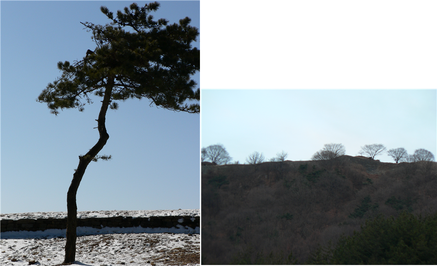 山城에 올랐다. 정상 넓은 분지에 서 있는 소나무들이 눈부신 햇살을 즐기고 있다. 그 주위를 돌면서 변화하는 자유로운 모습을 눈에 담는다. 산성 돌길을 따라 내려간다. 눈은 돌 위에서 습기 없이 잘 마르고 있다. 멀리 눈에 파묻혀 잠든 산디마을이 보인다. 마른풀들이 편한 자세로 따뜻한 눈을 푹 뒤집어쓰고 있다. 산성아래 나무들도, 건너편 산도 가까이 다가선다. 귀가 멍하니 일체 소리는 없다. 환한 눈부심 속에도 깊은 적막이 있다. 일월山에서는 見보다 觀이다.