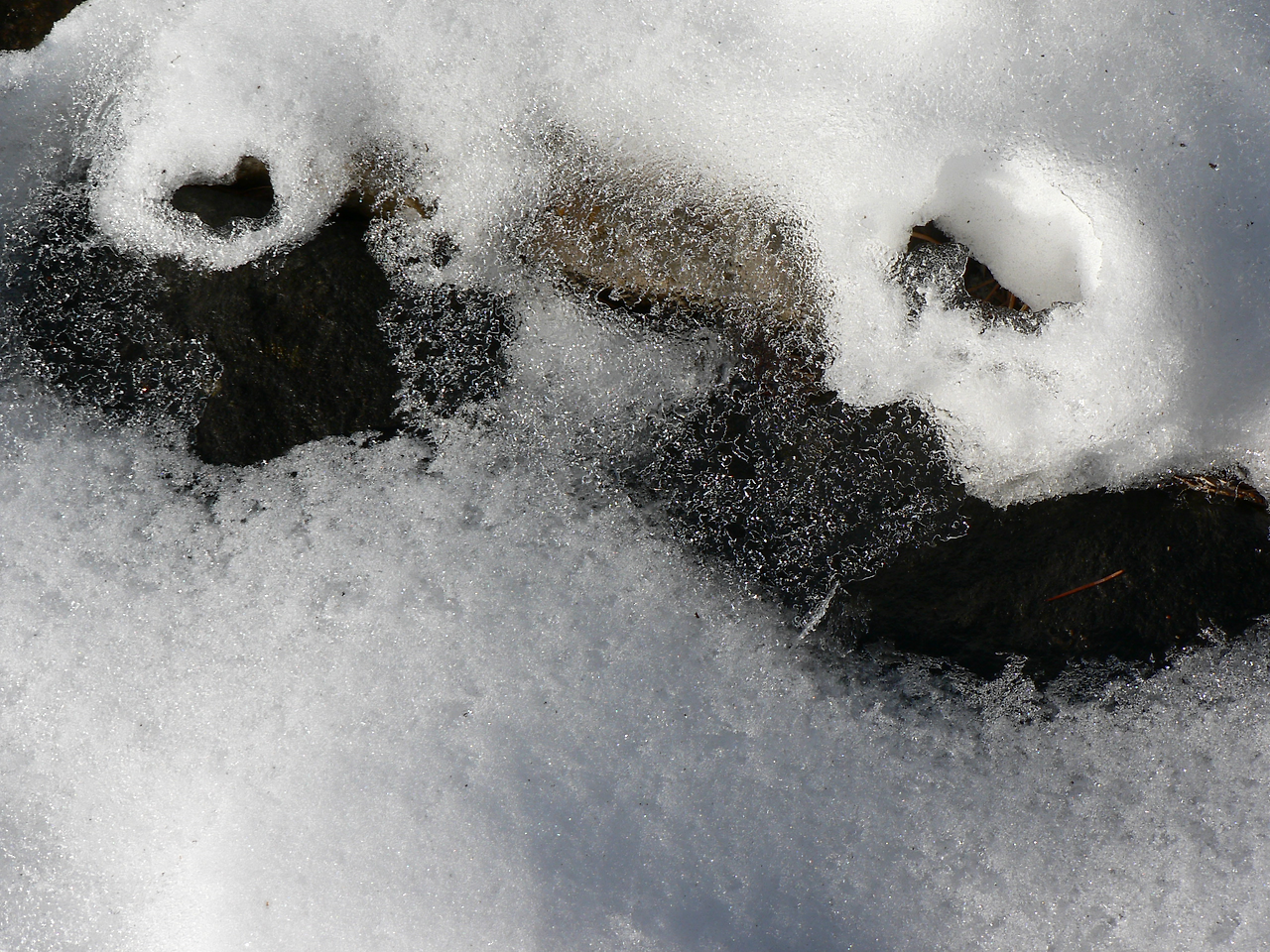 바위 위 잘 마른눈을 손으로 쓸어내린 후