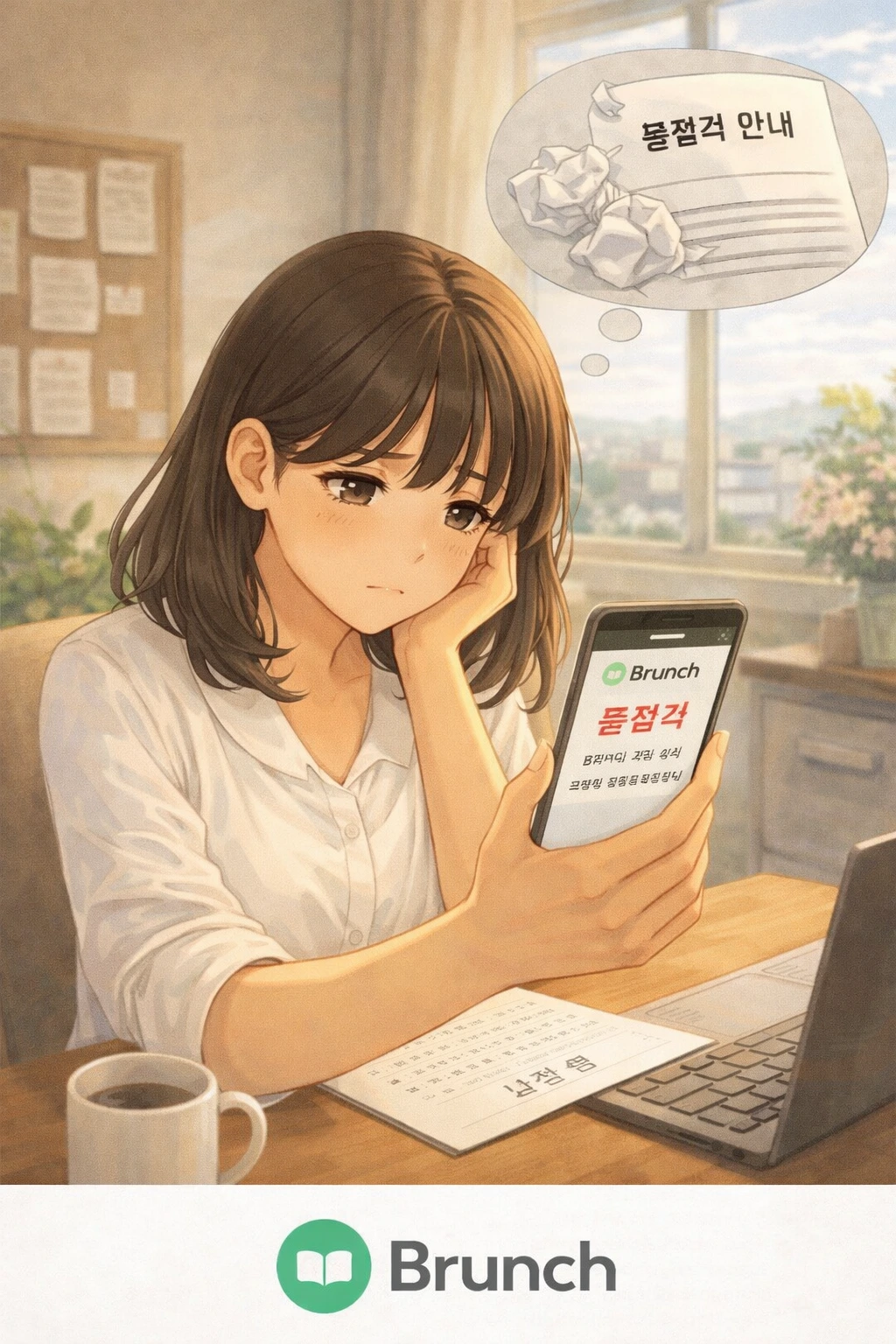 불합격을 너무 많이 한 탓인지 당연히 또 떨어졌다는 내용의 알림일 거라고 생각하며