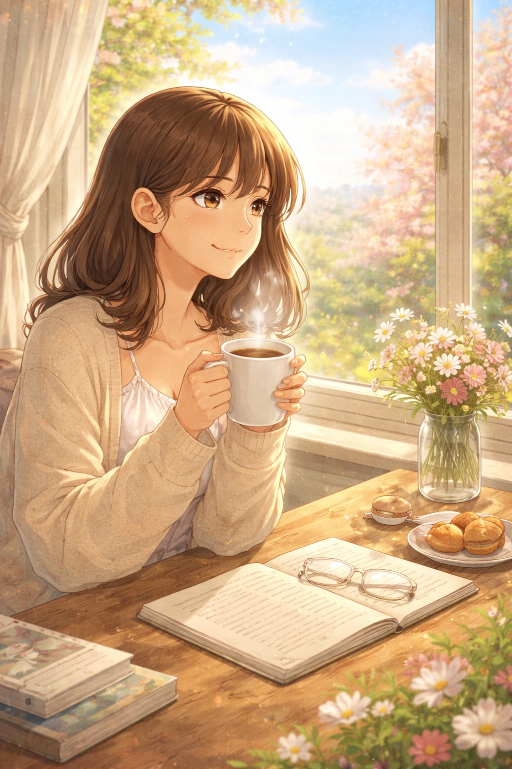 창문을 살짝 열면봄이 먼저 인사를 건넨다차갑지도, 뜨겁지도 않은 바람이조용히 어깨 위에 내려앉고따뜻한 머그컵을 감싸 쥔 손끝에하루가 천천히 녹아든다커피 향은어제의 마음을 부드럽게 덮어주고아직 시작되지 않은 오늘은이 한 모금 안에서 조용히 피어난다아무것도 하지 않아도 괜찮은 순간그저 숨 쉬는 것만으로 충분한 아침나는 지금봄과 커피 사이에 앉아조용히 나를 마신다