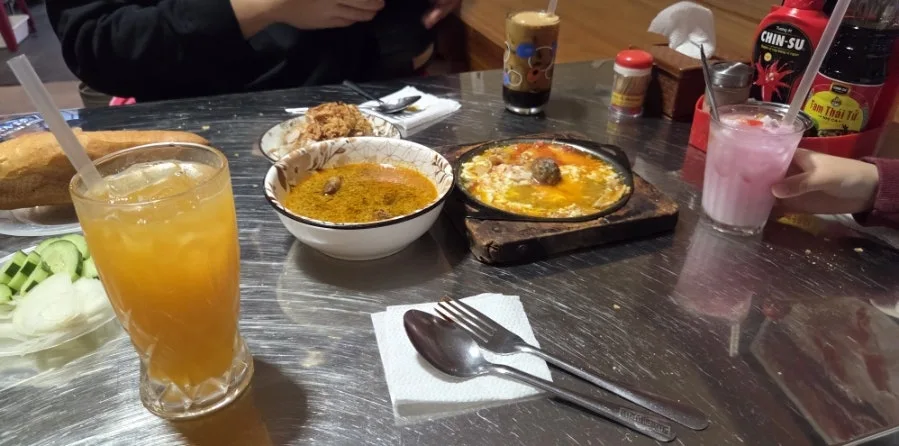 현지 아침 식당에서 먹은 미꽝과 레몬에이드