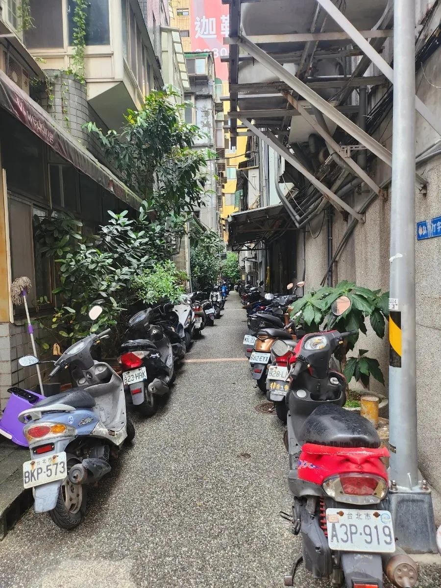 희한한 것은 대만에서 여기저기 유명한 곳들을 많이 갔는데, 오토바이가 양옆으로 쪼로미 세워져 있던 골목길 풍경이 유독 기억에 남는다. 중정기념당 찾으러 가는 길에 갑자기 옆에 나타났던 곳인데, 일부러 무슨 연출을 해놓은 것마냥 '이곳은 대만이다'라고 얘기해주고 있었다.