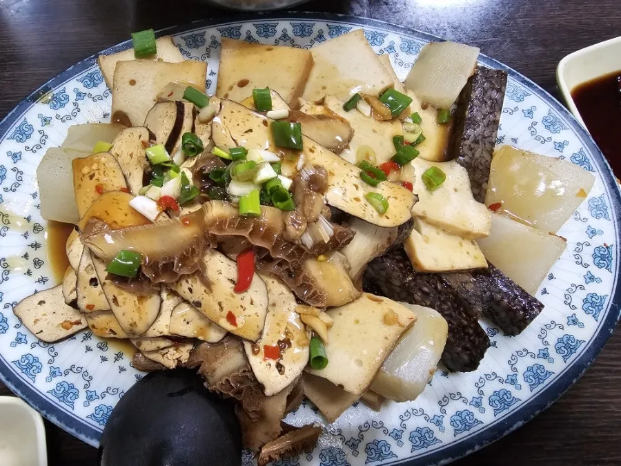 늦게 숙소에 도착한 날, 저녁을 먹으러 근처 골목길에 있는 식당을 찾아갔었다. 이름도 알 수 없지만 가까이 열려 있는 식당이라 간 곳인데, 그곳에서 이 식당 단골손님으로 보이는 아저씨가 음식을 추천해 주셔서 먹어 본 대만식 내장 요리가 있었다. 맛이 나쁘진 않았지만 내 취향은 아니라 많이 먹지는 못했다. 하지만 현지인 추천 음식이기도 하고 잊을 수 없는 비주얼이어서 기억에 많이 남는다.