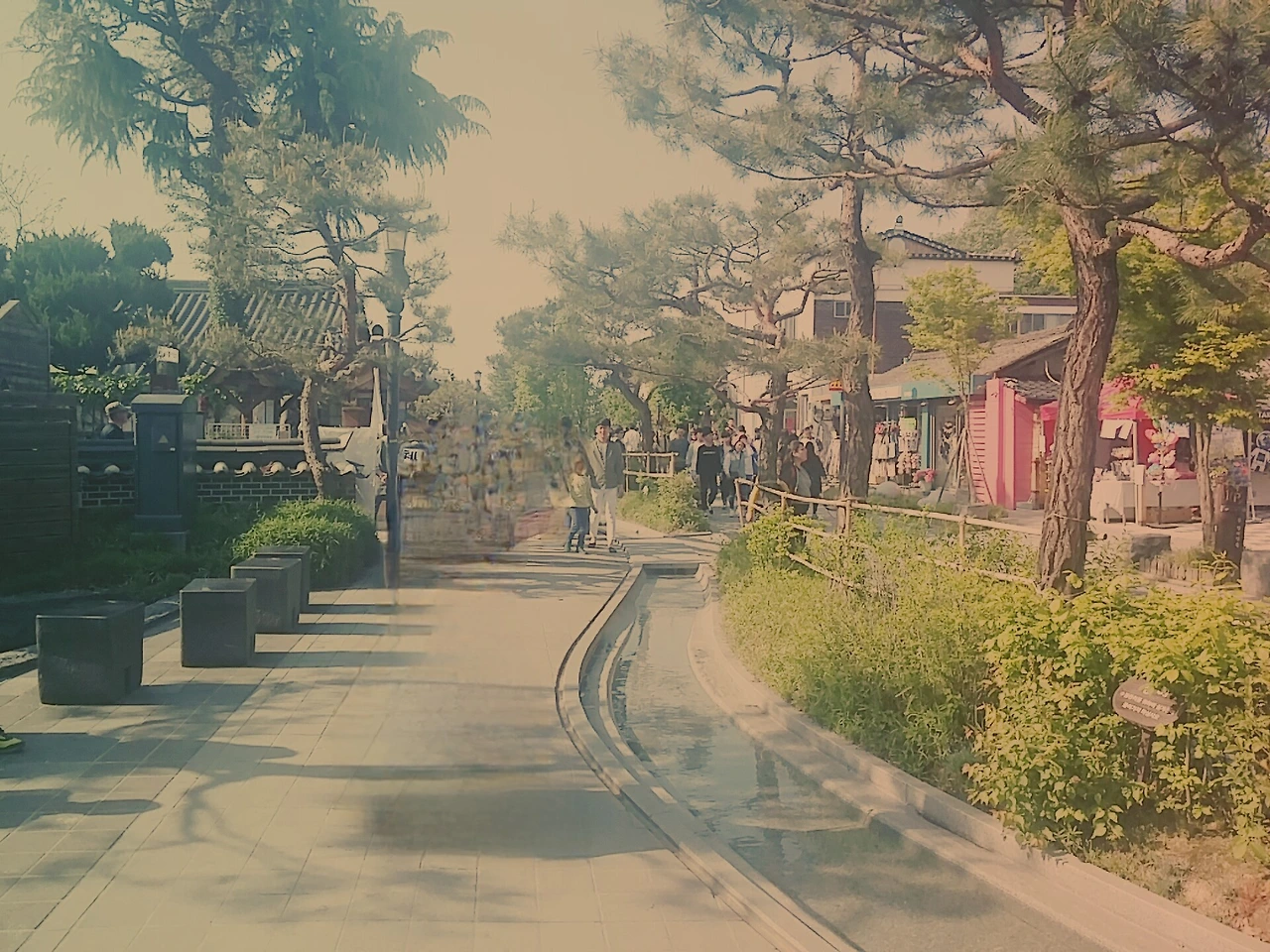 전주 한옥마을은 안동 하회마을의 흙길과는 다르게 길이 잘 닦여져 있는 아스팔트 길과 벽돌 블록 길이다. 10년 전 기억이지만 안동 하회마을이 FM 전통 한옥마을 같은 느낌이라면 전주 한옥마을은 외국물 먹은 신도시 한옥마을 같은 느낌이었다. 두 곳의 분위기가 달라서 뭐가 더 나았다고는 할 수 없다. 조용히 산책하고 자연을 느끼기에는 안동 하회마을이 좋았고, 먹고 즐기기에는 전주 한옥마을이 좋았다.